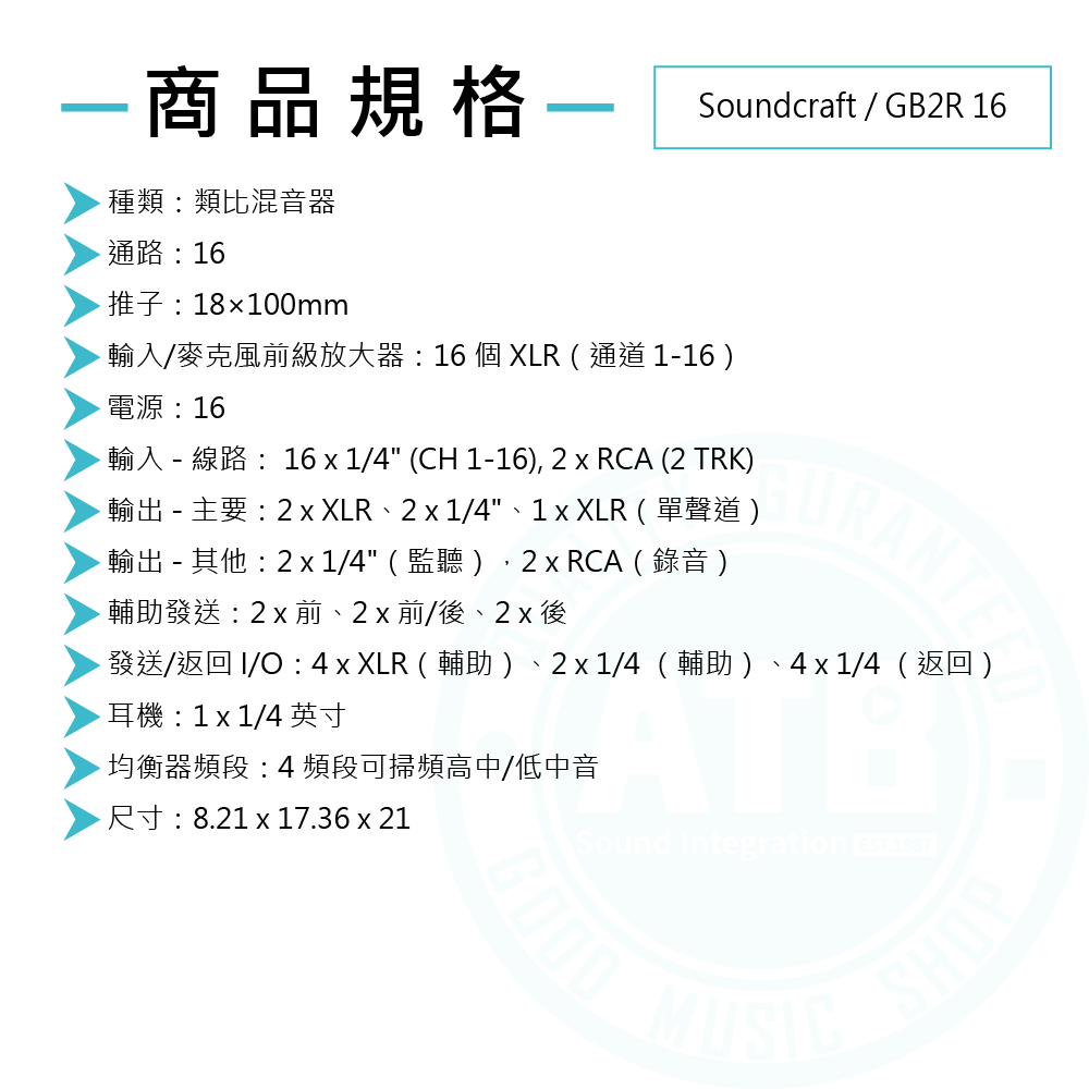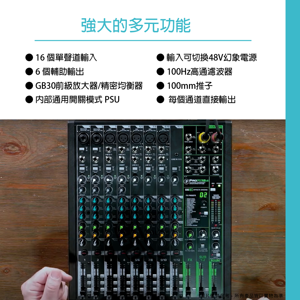 ◆16個單聲道輸入、立體聲混音6個輔助輸出