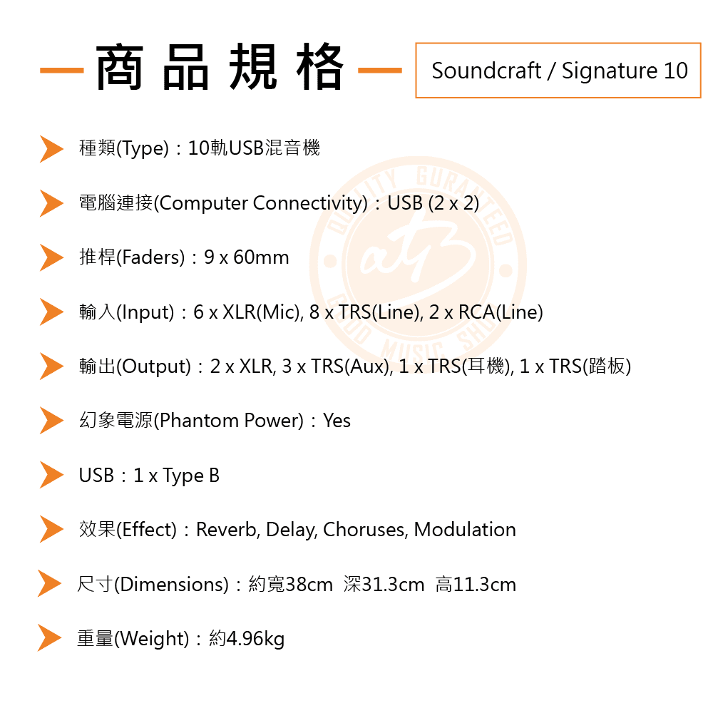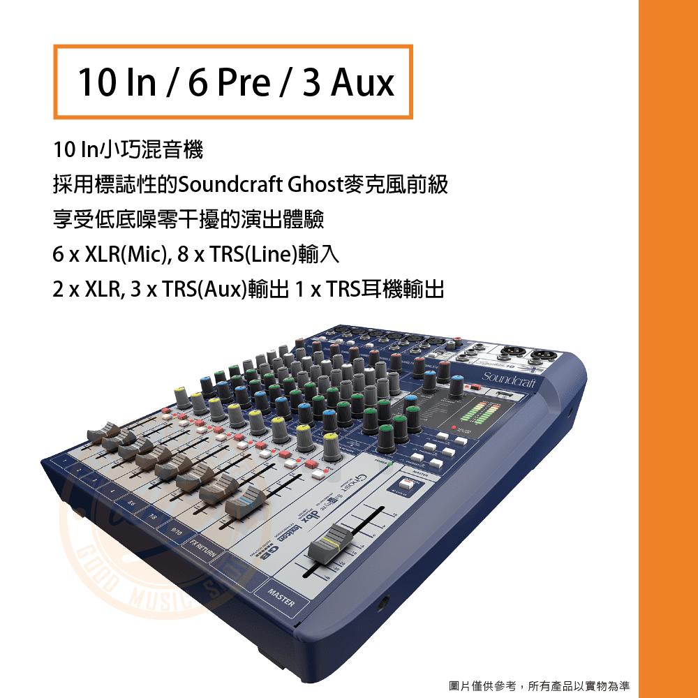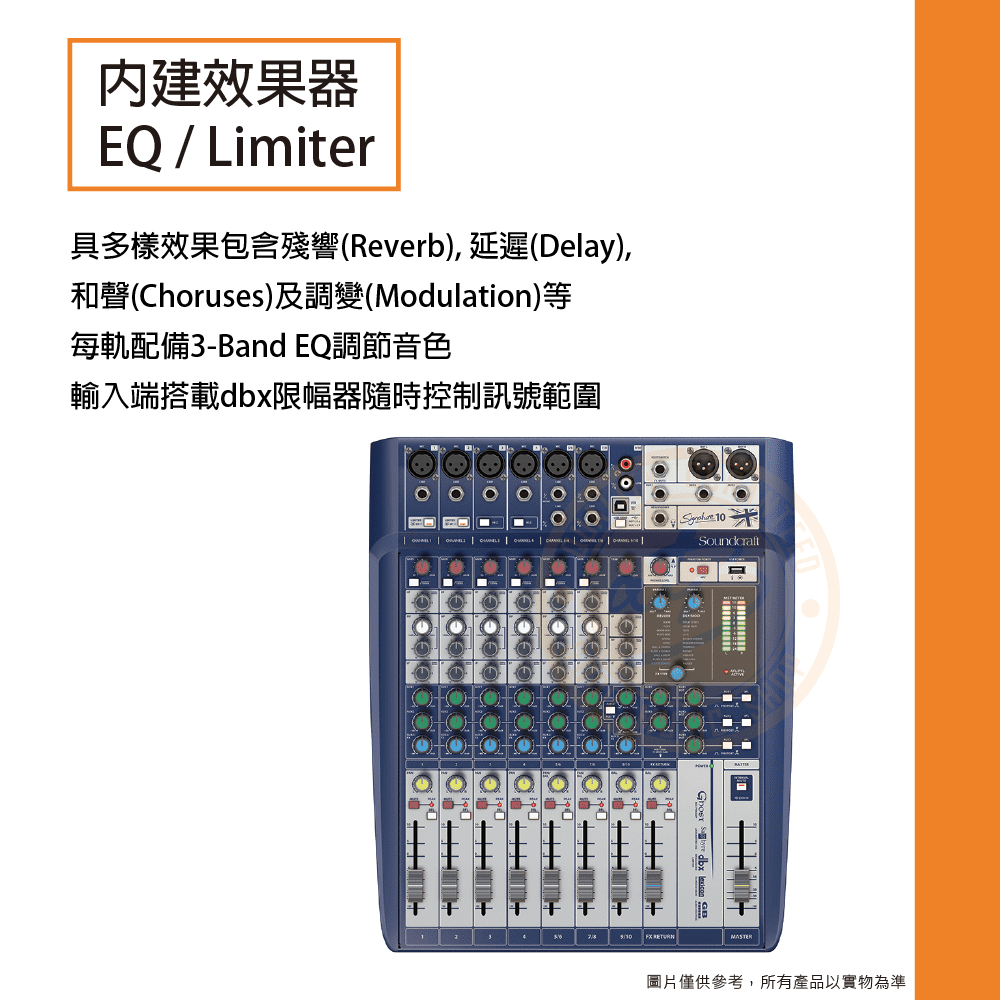 ◆ 10In/6Pre/3Aux,內建效果包含Reverb, Delay, Chorus等