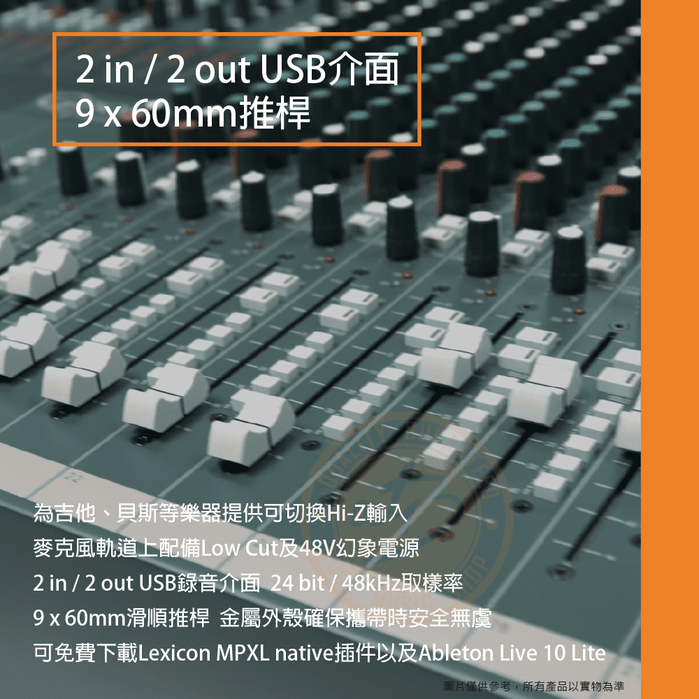 ◆ 2in/2out USB錄音介面,每軌具3-Band EQ