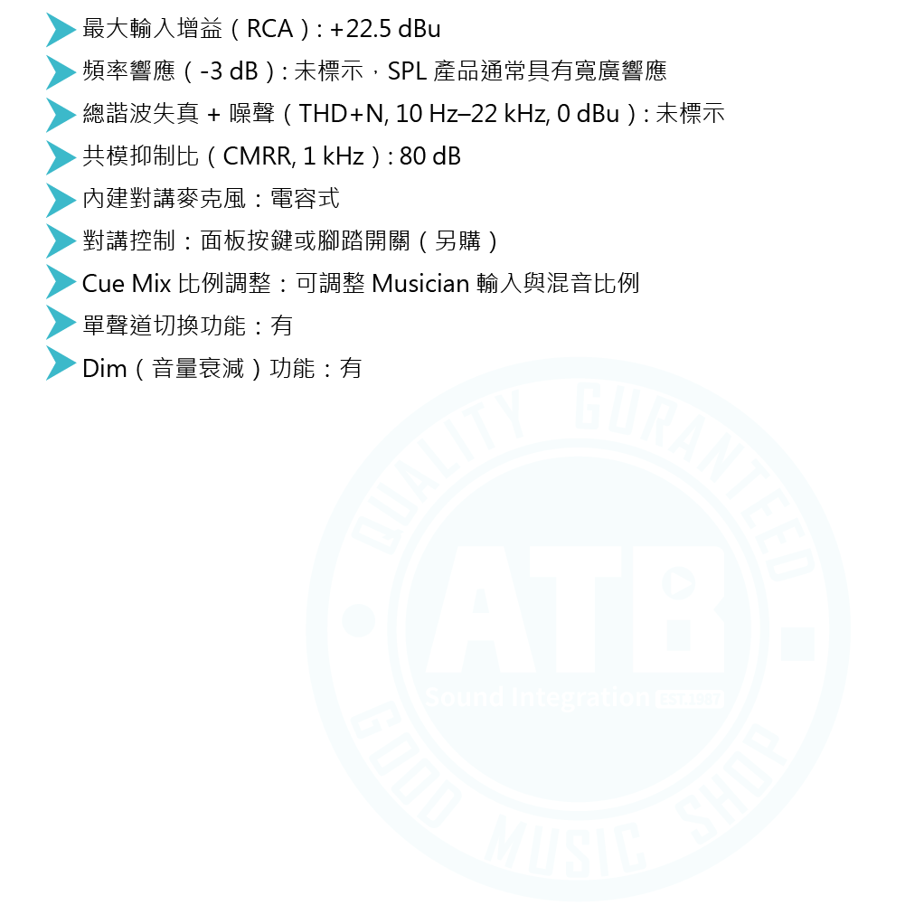 ◆ Cue Mix 功能提供彈性樂手監聽