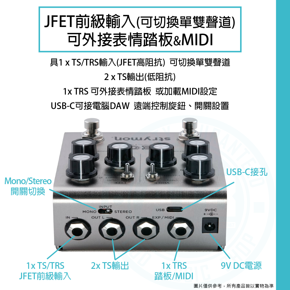 ◆ 具JFET前級輸入(單雙聲道切換)、可外接表情踏板&MIDI