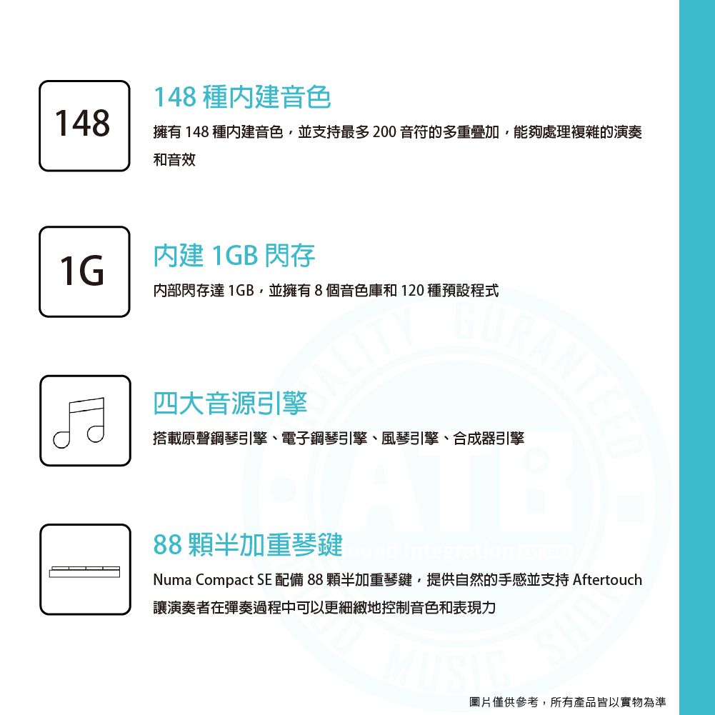 ◆148 種高品質內建音色及 200 音符的最大發聲數