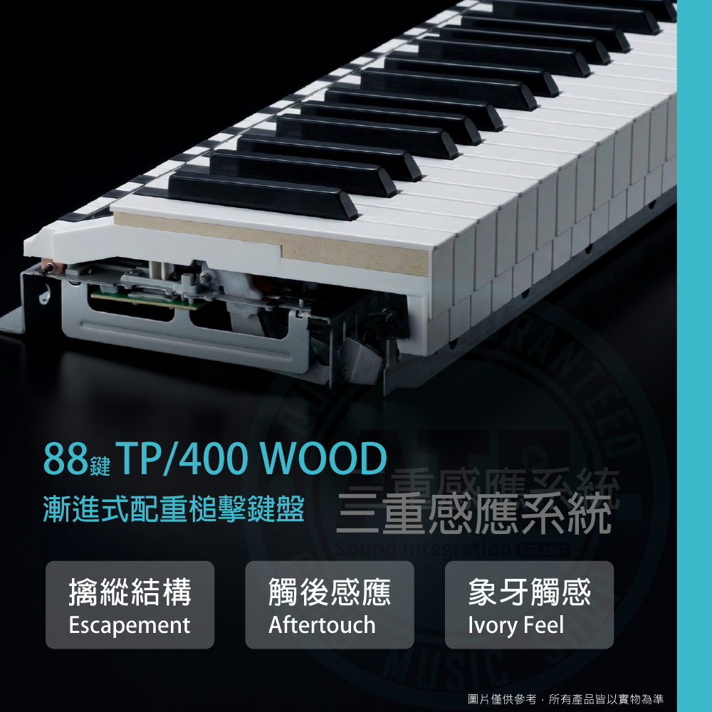 ◆TP/400 Wood 木質漸進式配重鍵盤,具 Escapement 與 Aftertouch