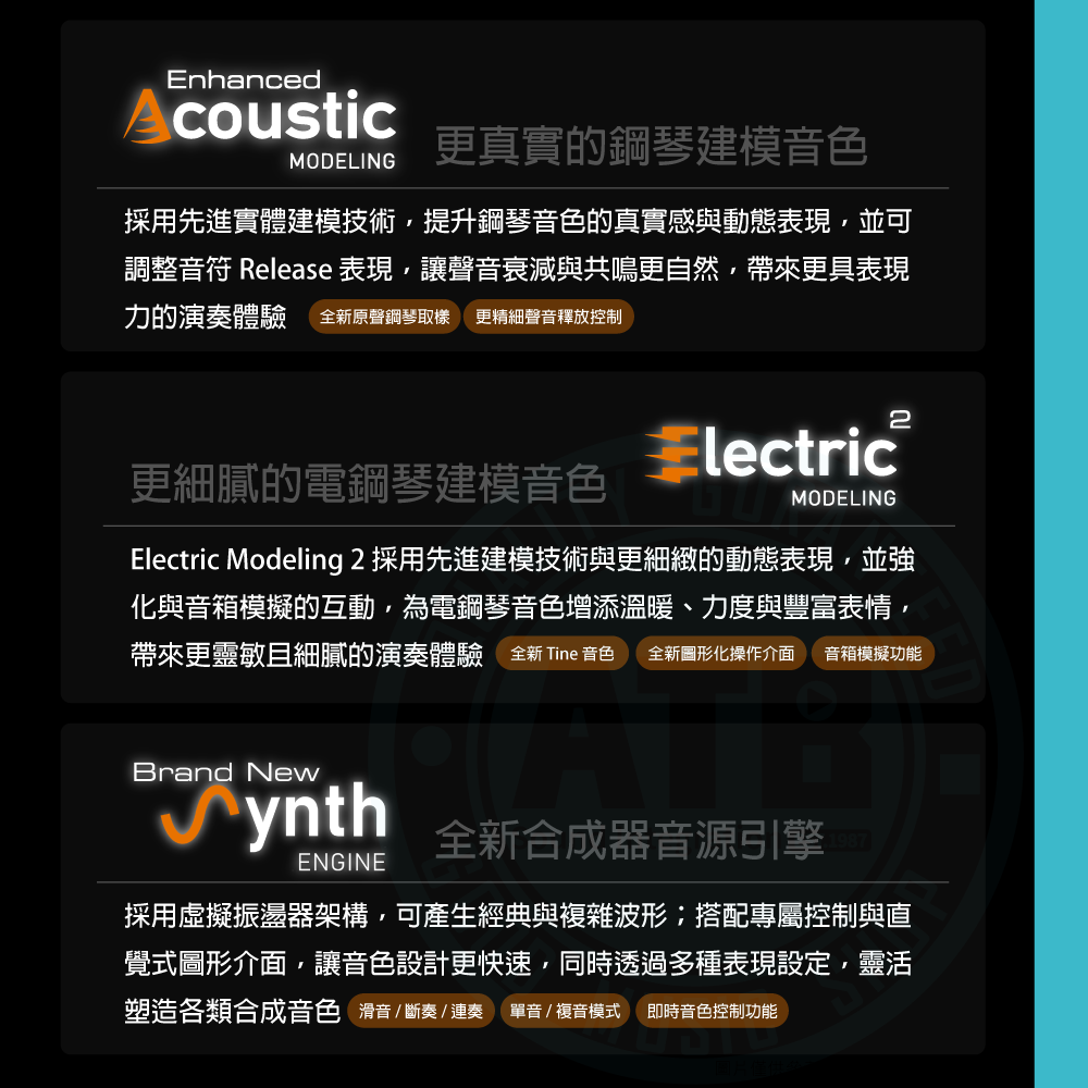 ◆先進鋼琴與電鋼琴建模技術,音色自然細膩