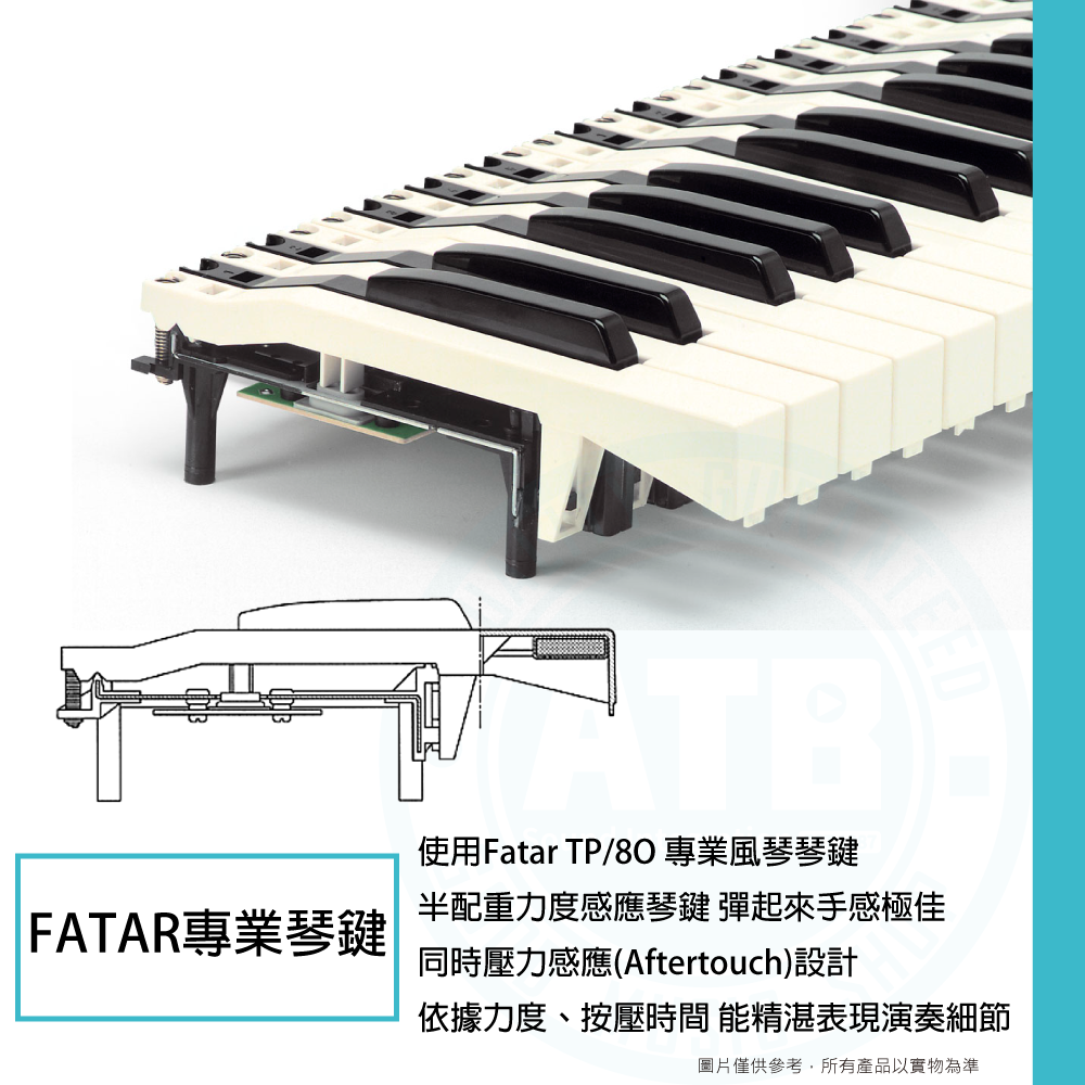 ◆採用TP/80半配重、力度感應鍵盤