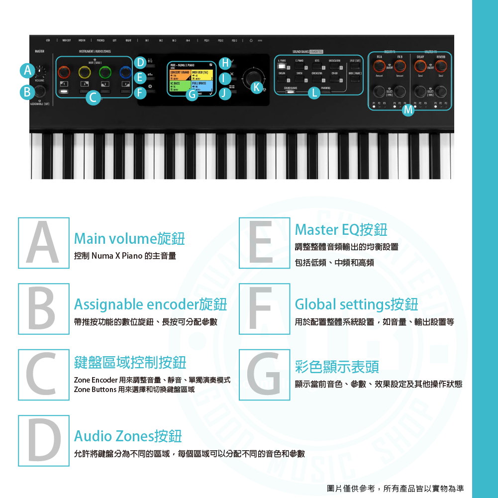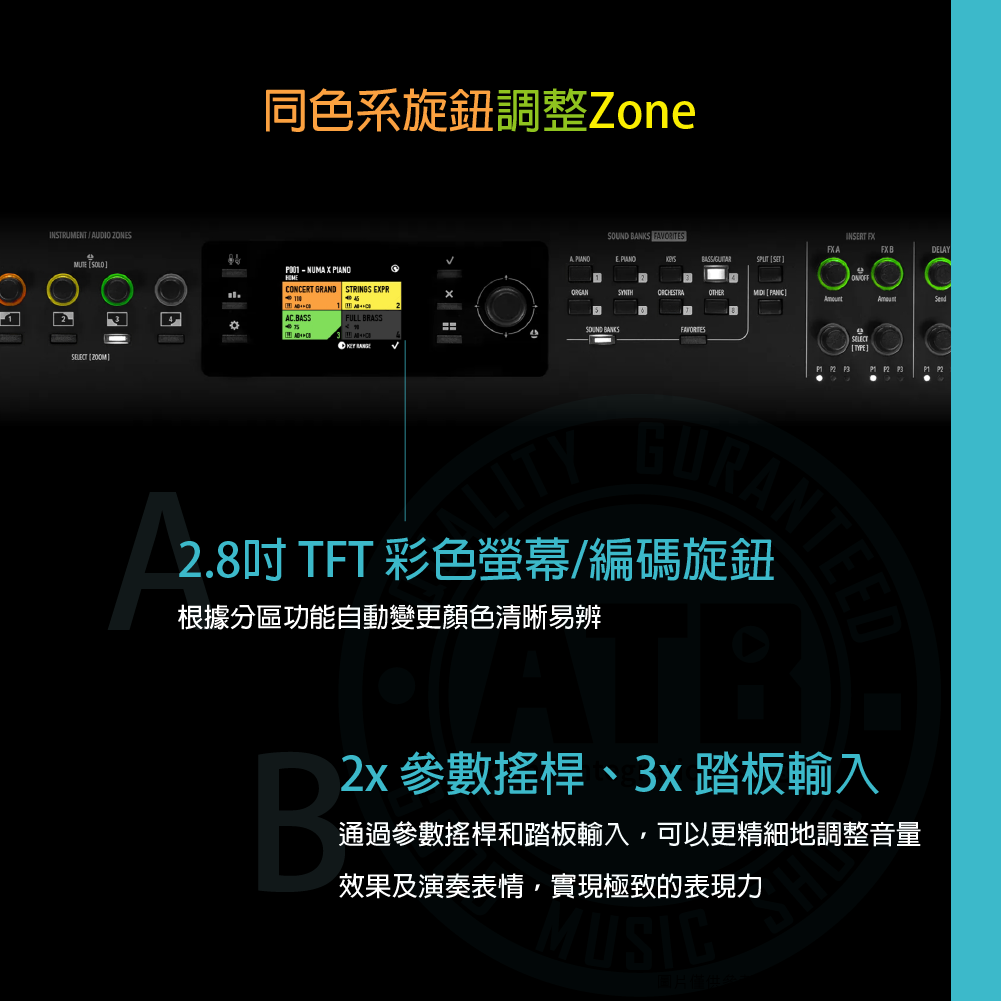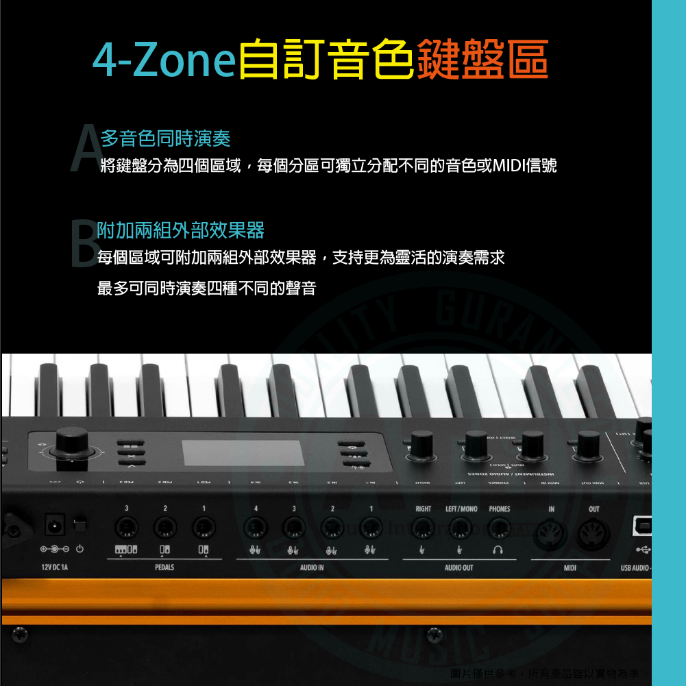 ◆4-Zone自訂音色鍵盤區,每Zone可同時外掛2組效果器