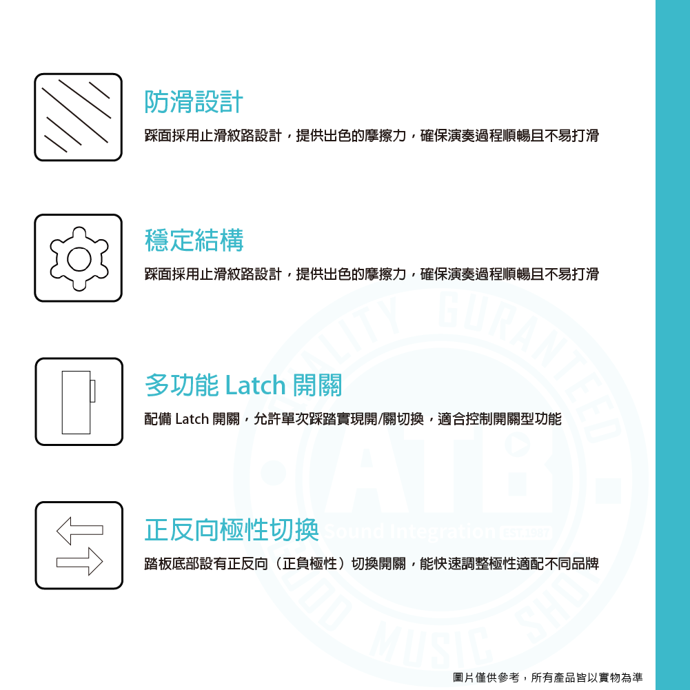 ◆ 可切換正反向(正負極),適用Yamaha、Roland、Korg、Casio、Nord...等廠牌