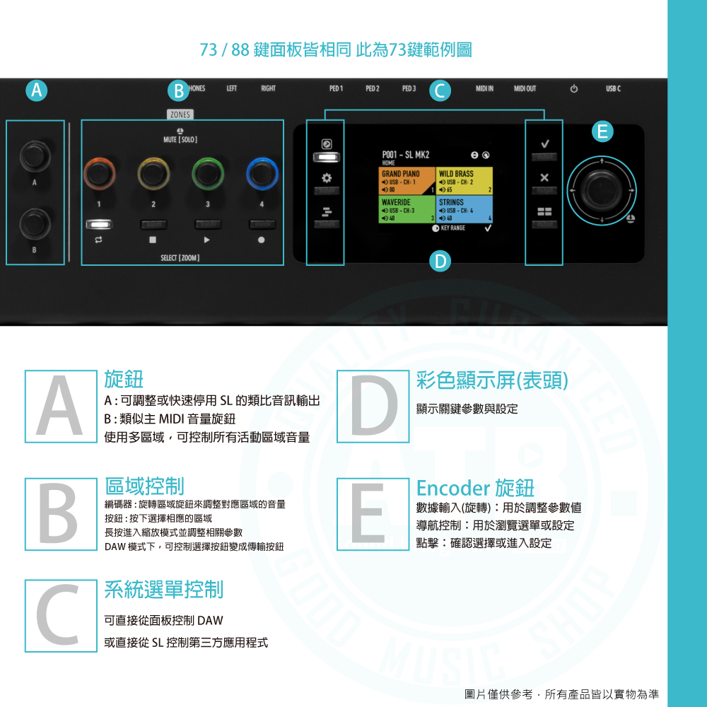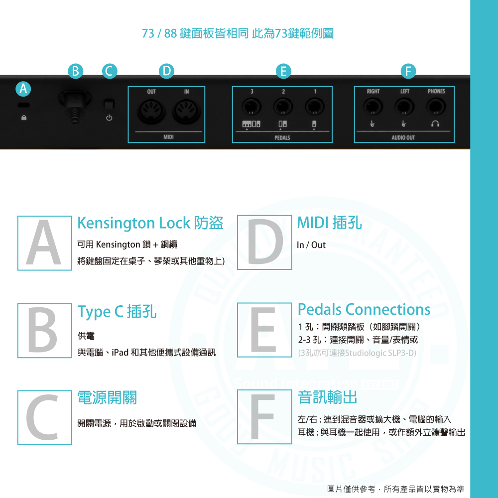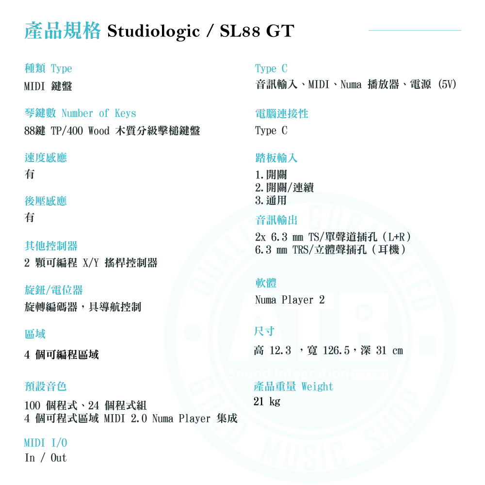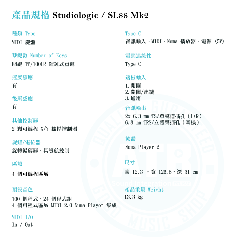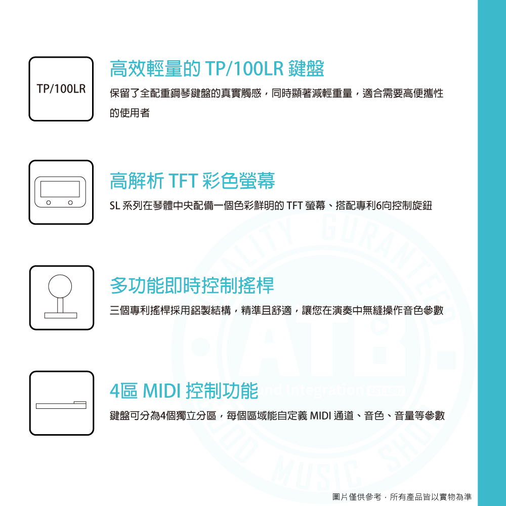 ◆ 義大利製造,採Fatar TP/100LR錘擊式重量琴鍵