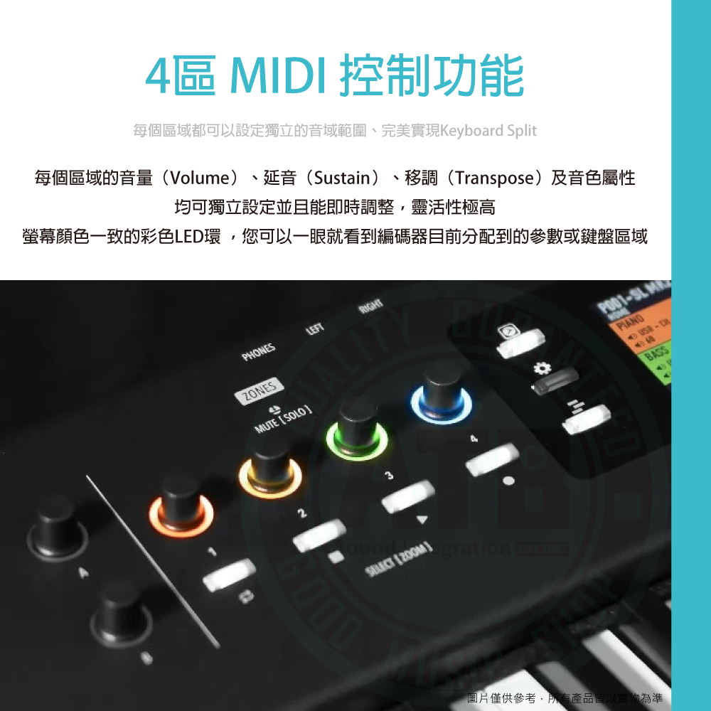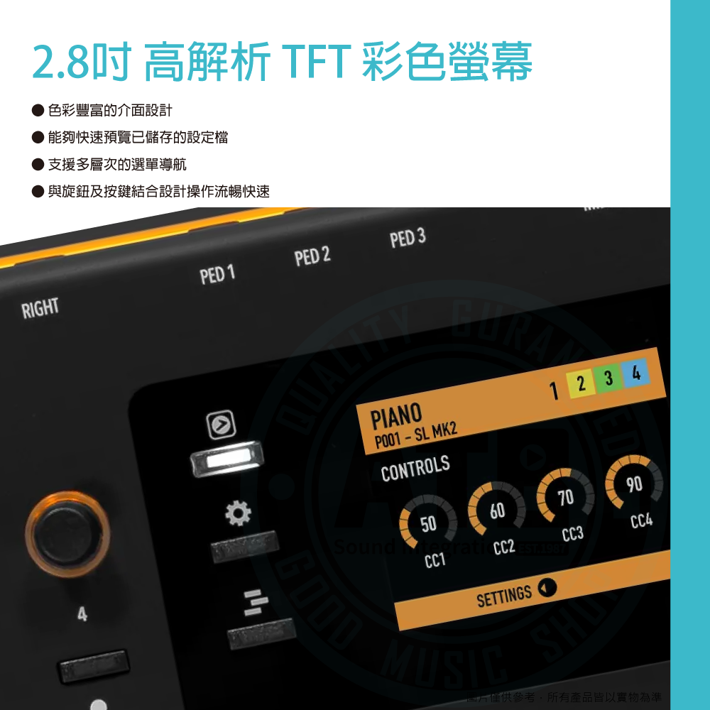◆ 搭載2.8吋TFT全彩螢幕、4-Zone自訂音色鍵盤區