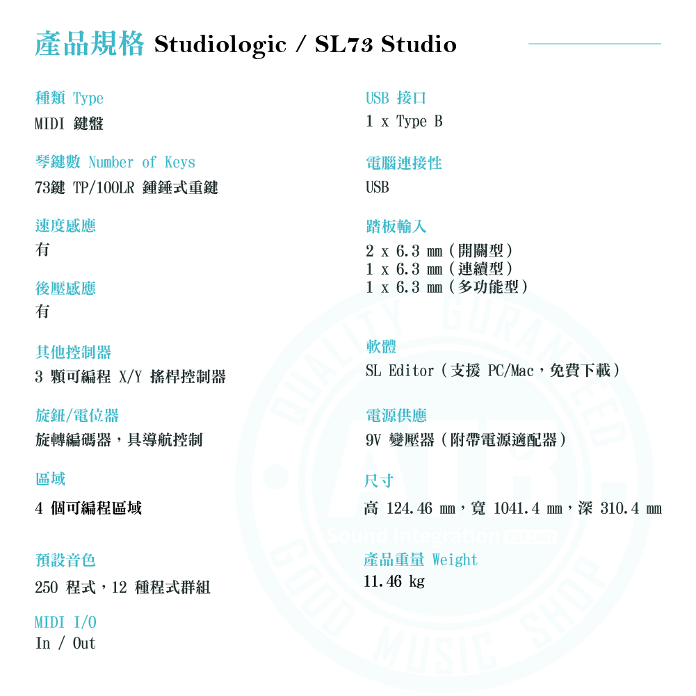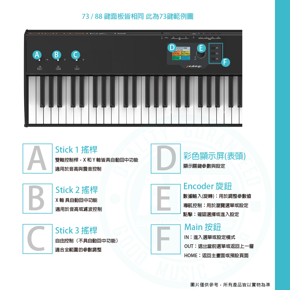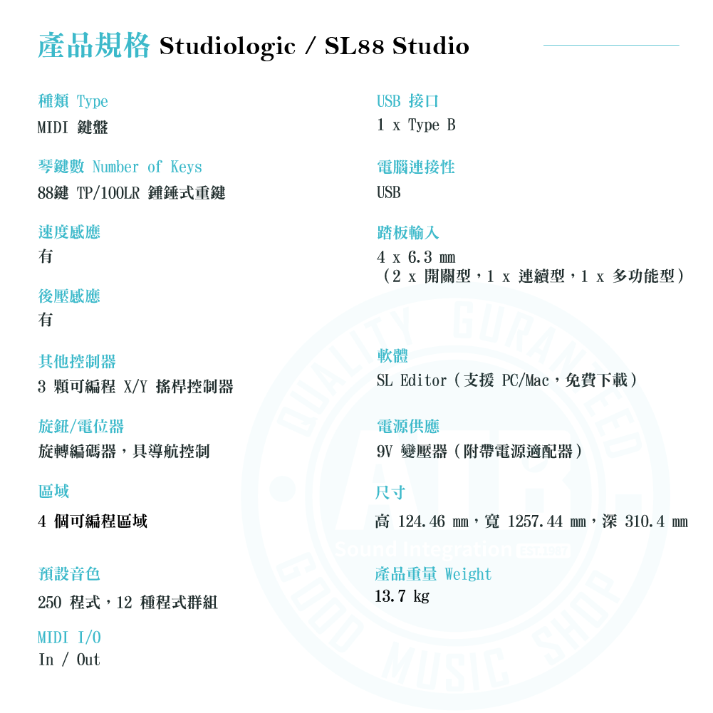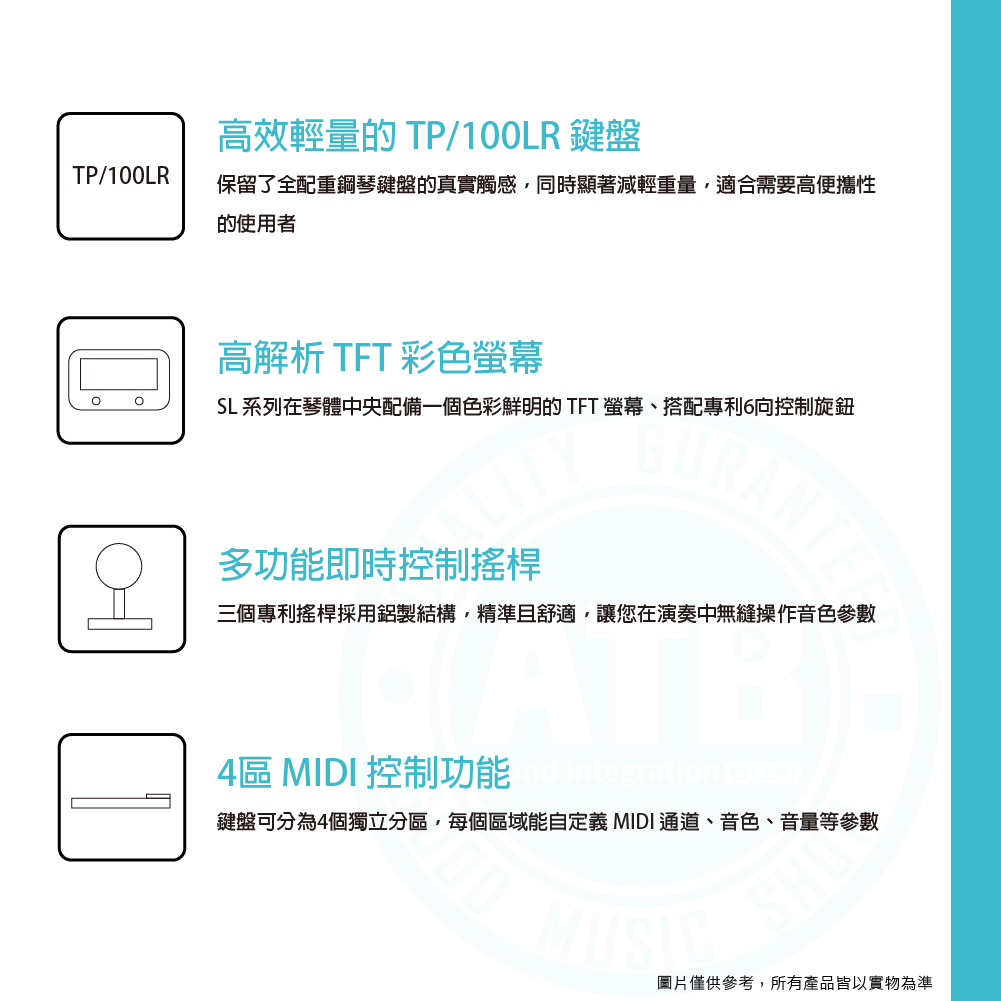 ◆ 義大利製造,採Fatar TP/100LR錘擊式重量琴鍵
