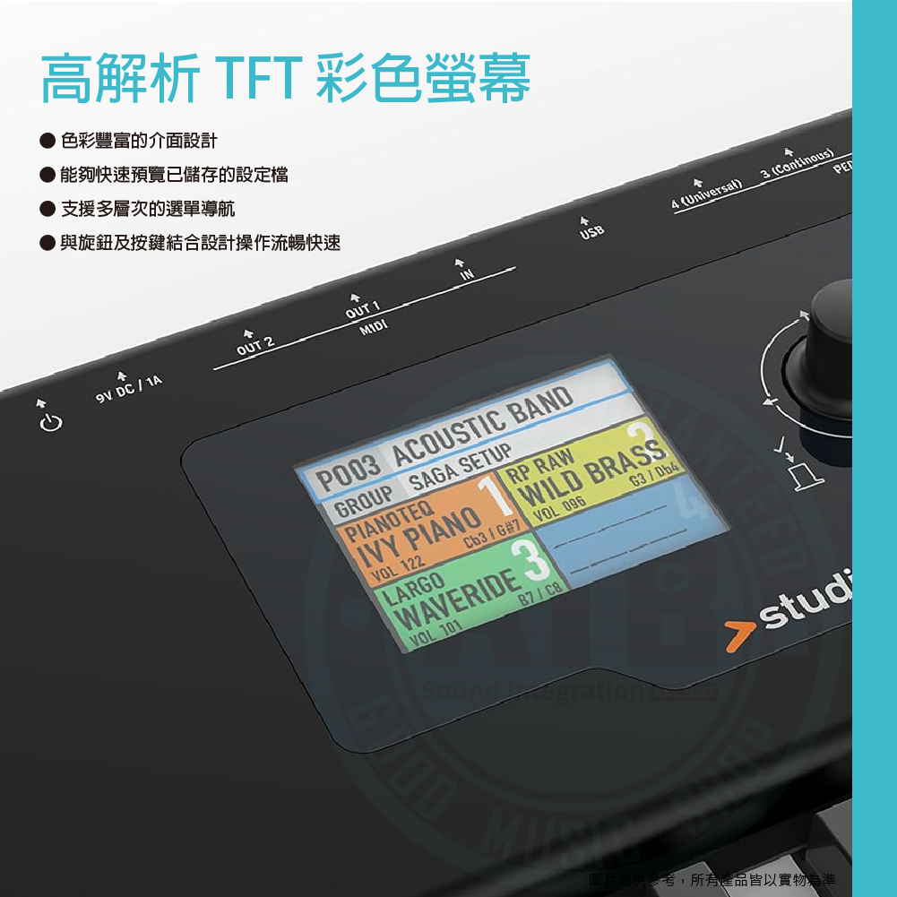 ◆ 搭載TFT全彩螢幕、4-Zone自訂音色鍵盤區