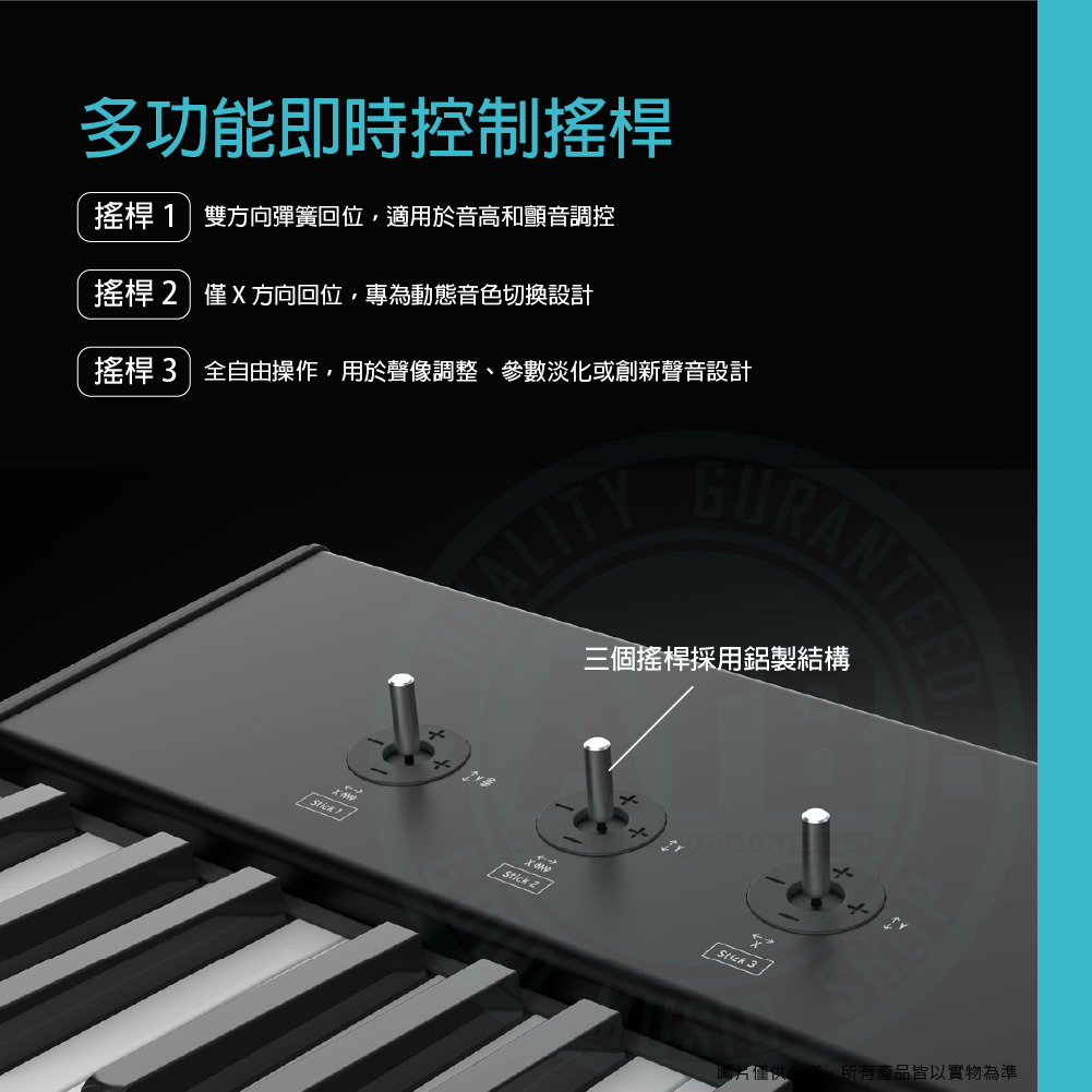 ◆ 擁有六向控制鈕x1、X/Y軸控制桿x3,快速調整MIDI參數