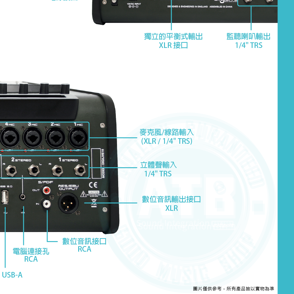 ◆提供 16 路總輸入和 8 個平衡式 XLR 實體輸出