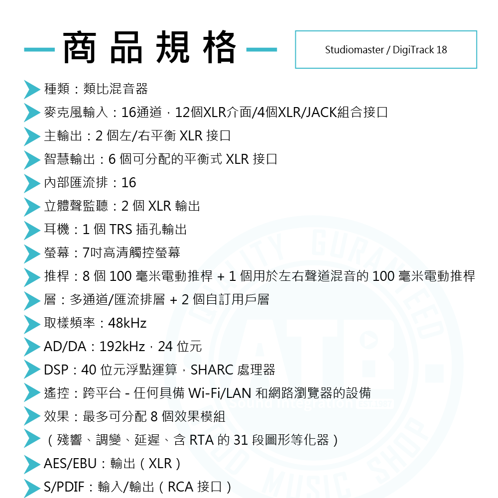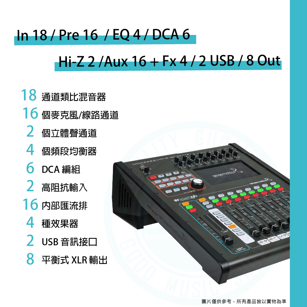 ◆18 輸入 (16 單聲道 + 1 立體聲)