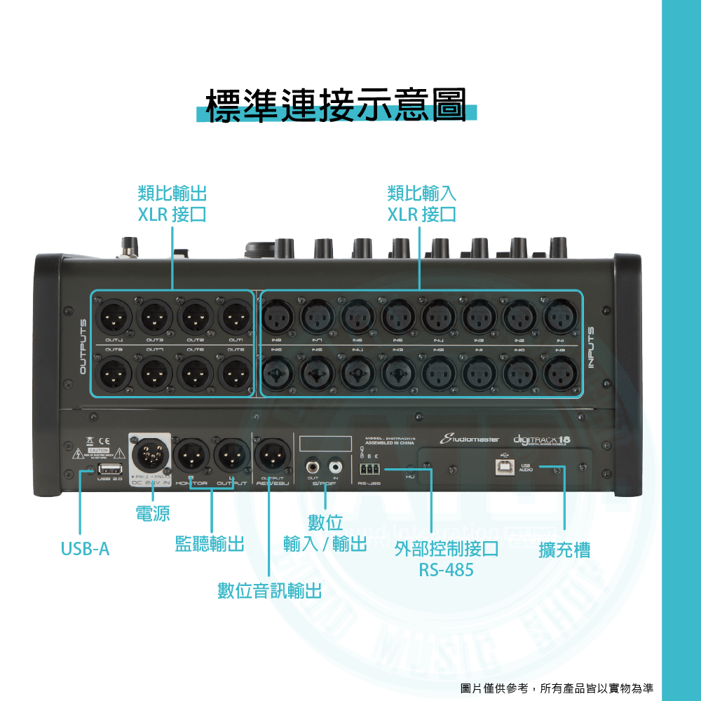 ◆提供 16 路總輸入和 8 個平衡式 XLR 實體輸出
