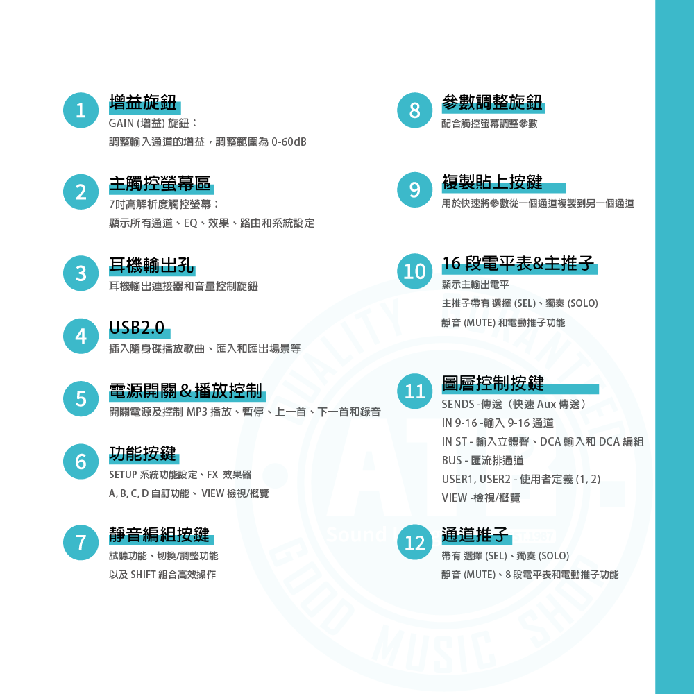 ◆支援 6 個 DCA 編組 和 2 個靜音編組