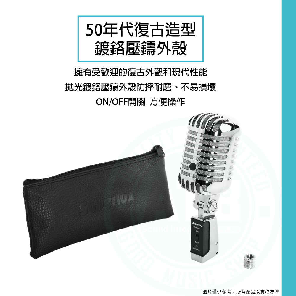 ◆ 復古造型、鍍鉻壓鑄外殼,麥克風頭可傾斜角度