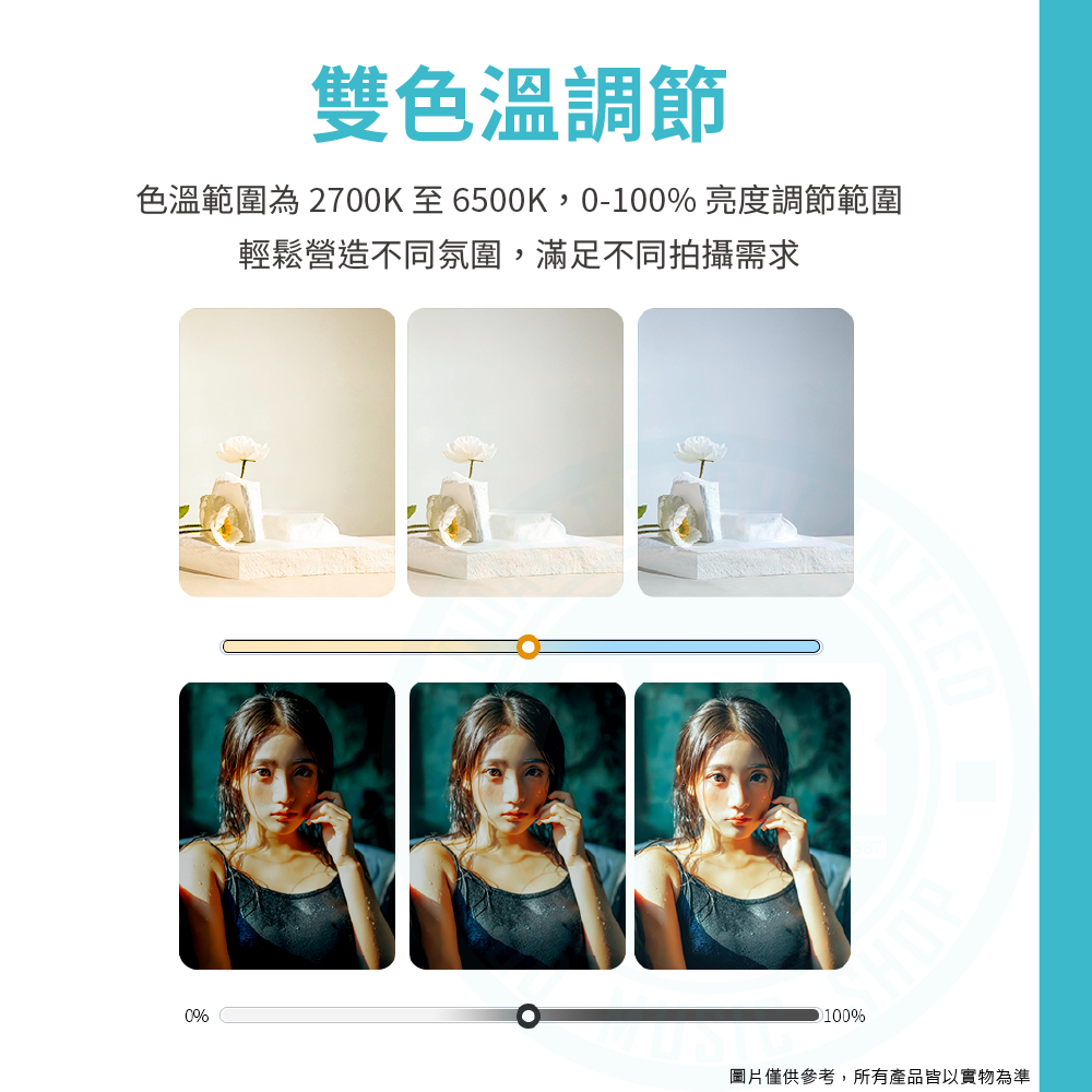 ◆ 冷暖色溫自由切換,滿足不同拍攝風格與場景需求