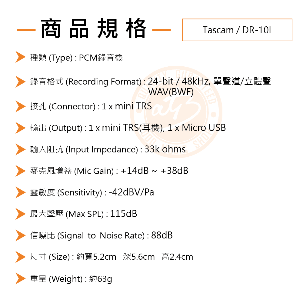 ◆ 附領夾式麥克風 ,捕捉24-bit / 48kHz音頻,兼容WAV、BWF格式