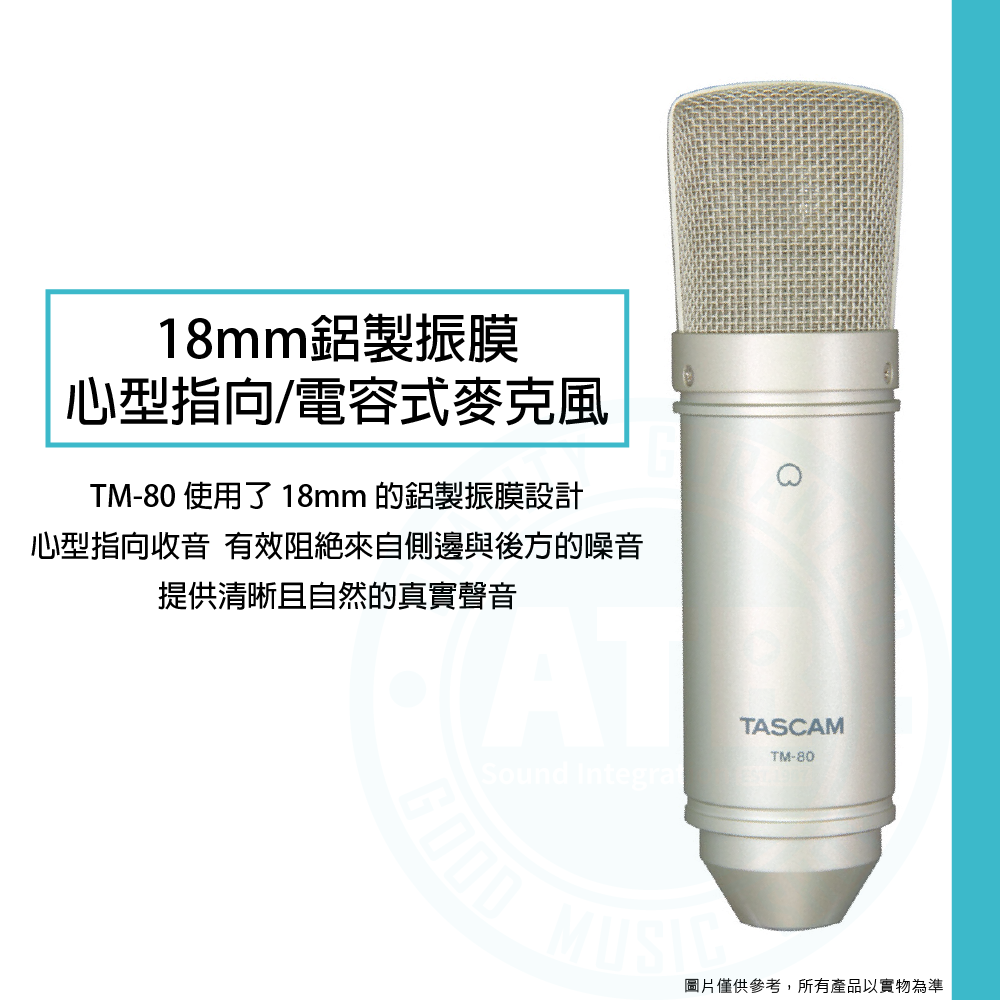 ◆ 心型指向電容式麥克風,採18mm鋁製振膜