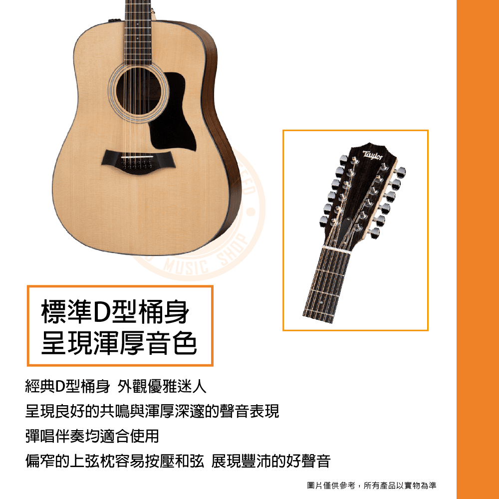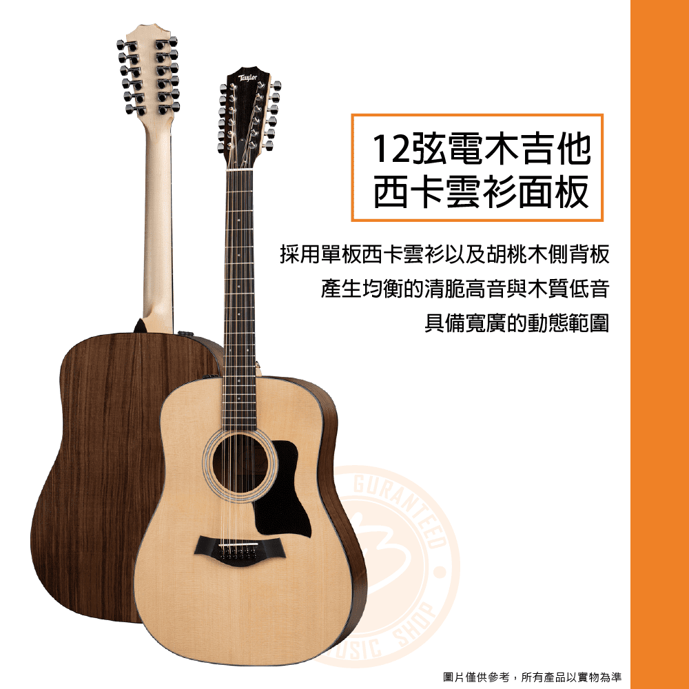 ◆ 12弦電木吉他採用單板西卡雲衫以及胡桃木側背板,產生清脆高音與木質低音,具備寬廣的動態範圍
