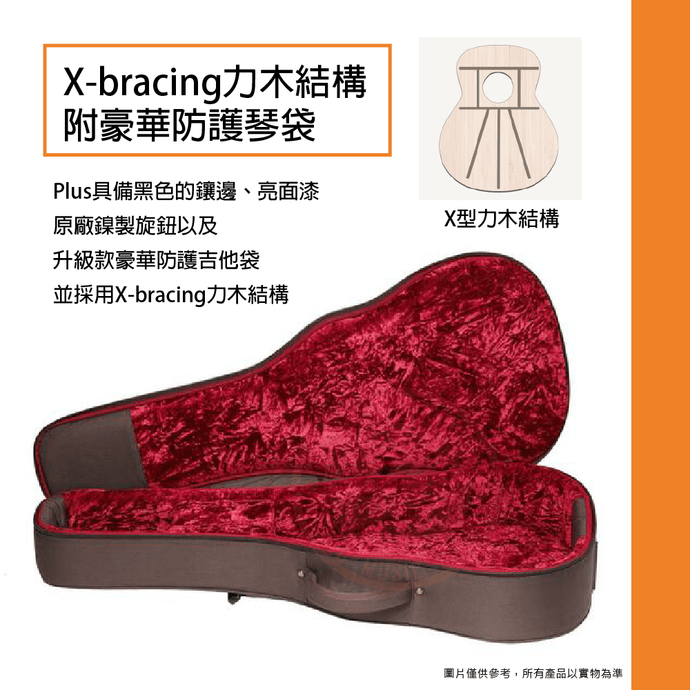 ◆ Plus具備黑色鑲邊、亮面漆、原廠鎳製旋鈕及升級款豪華防護琴袋