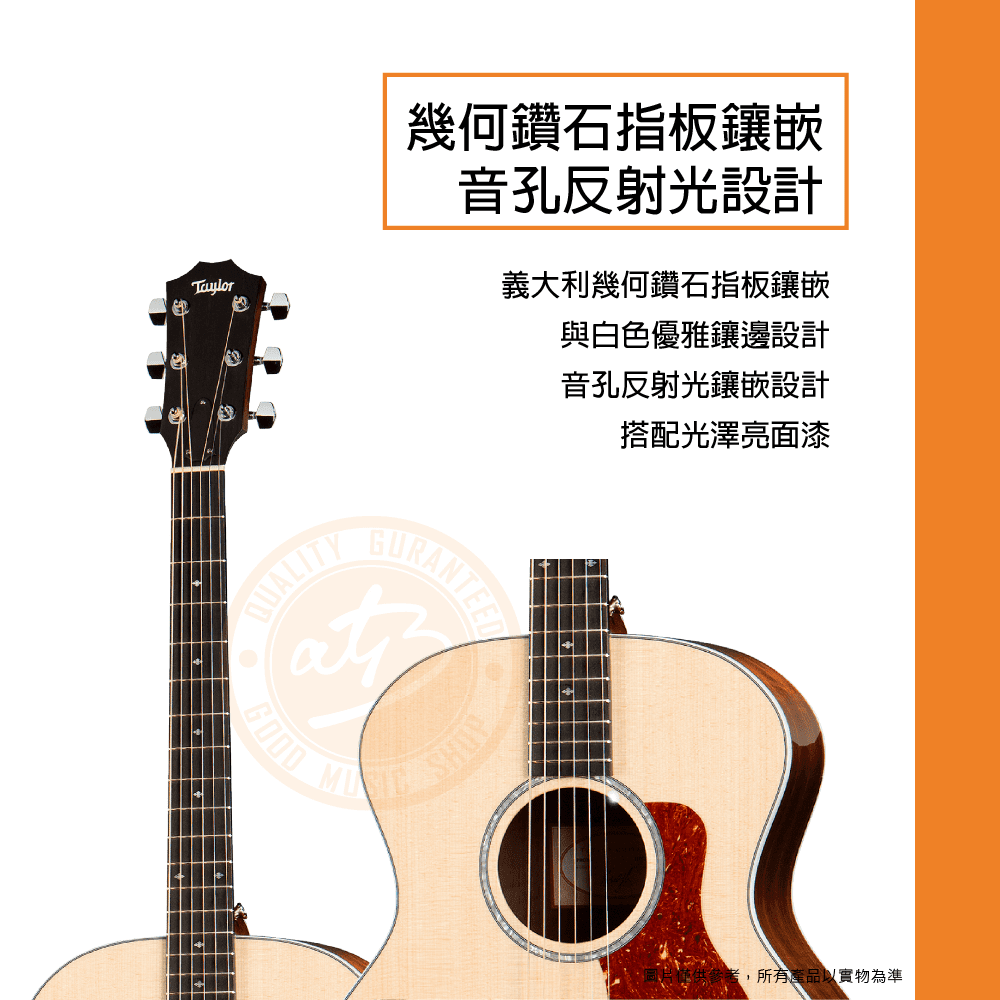 ◆ 義大利幾何鑽石指板鑲嵌與白色優雅鑲邊設計,音孔具反射光鑲嵌,搭配光澤亮面漆