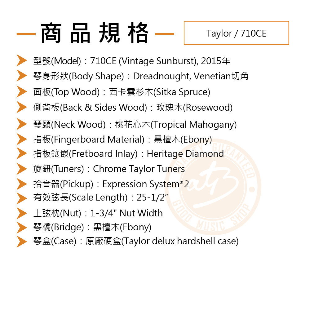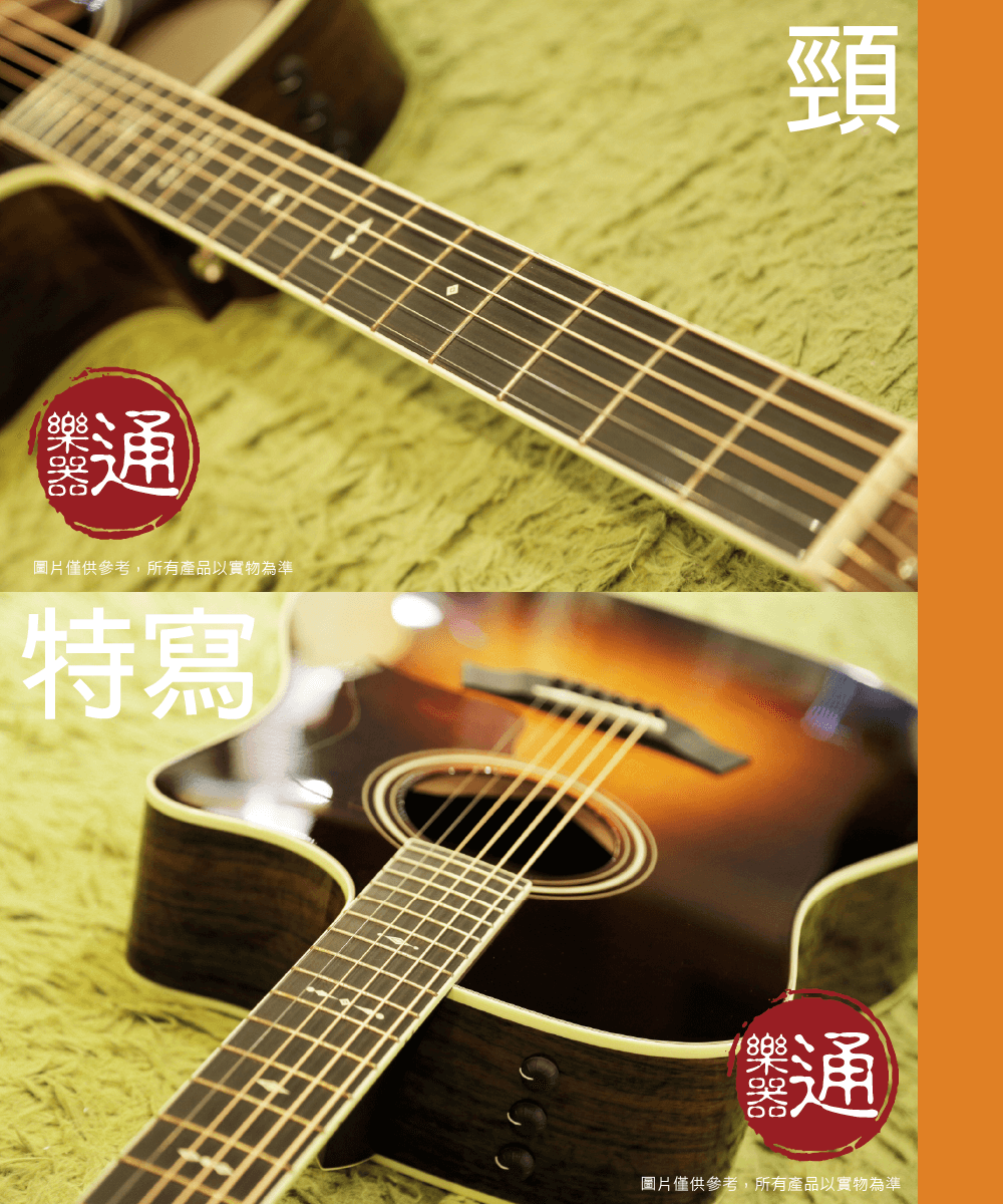 ◆ 西卡雲杉木面板 玫瑰木側背板、桃花心木琴頸與黑檀木指板