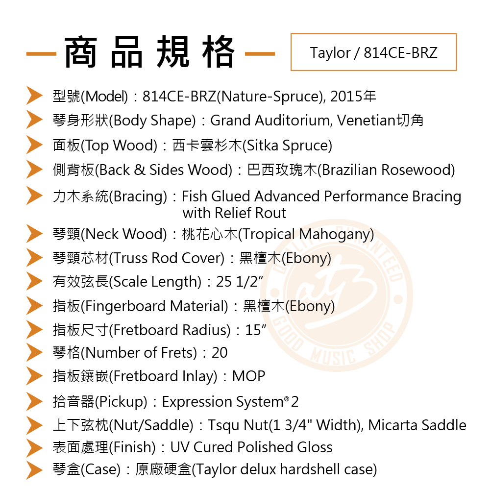 ◆ 天然西卡雲杉原木色 全單板電木吉他(2015年)