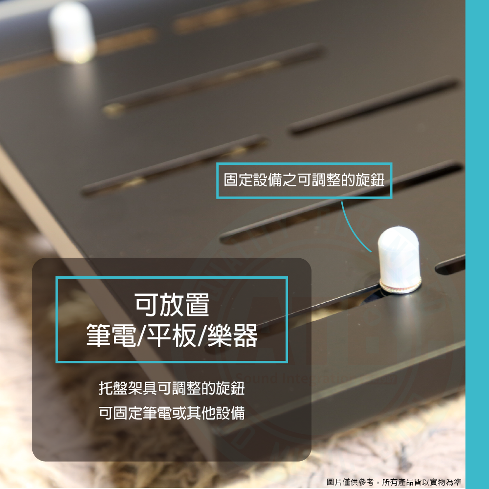 ◆可放置筆電/平板/樂器,具可調整的固定設備鈕
