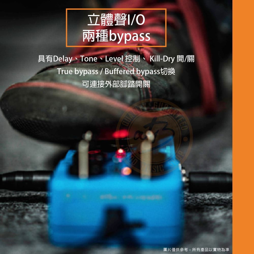 ◆ 立體聲I/O、True bypass / Buffered bypass切換