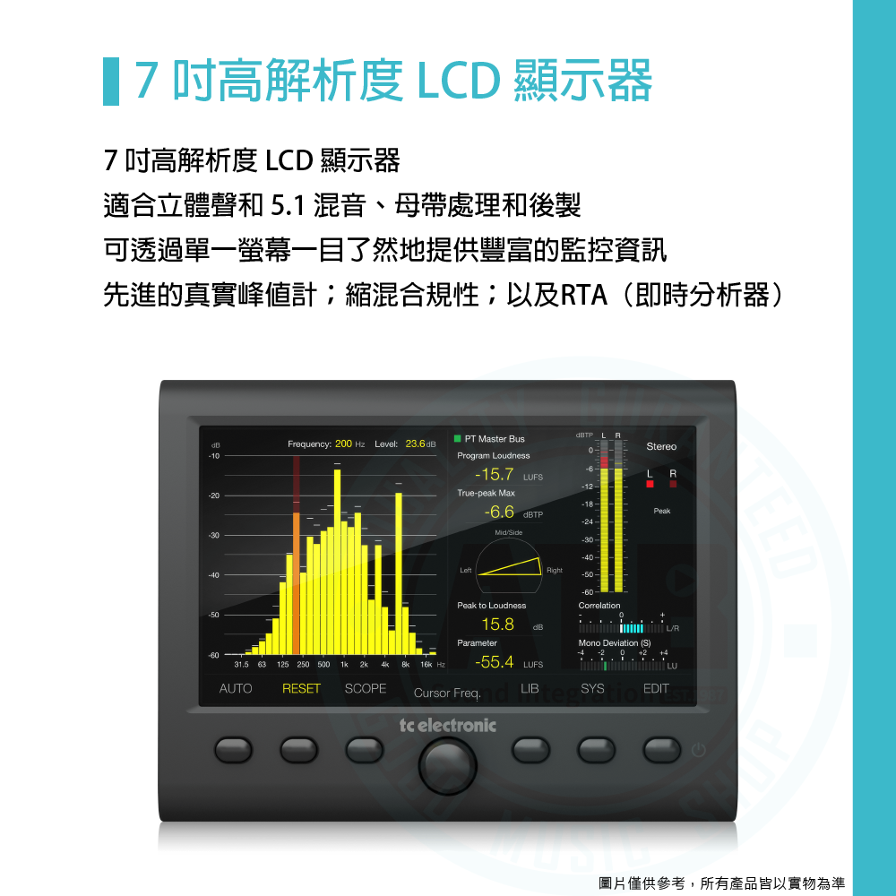 ◆7吋高分辨率 LCD 顯示屏,可在所有工作室環境中進行精確計量