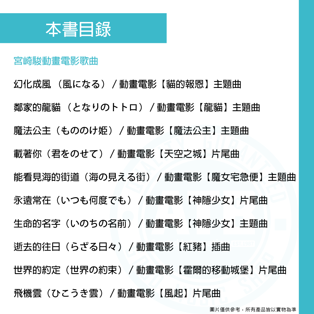◆精選書錄久石讓、大野克夫.....等經典動漫主題音樂
