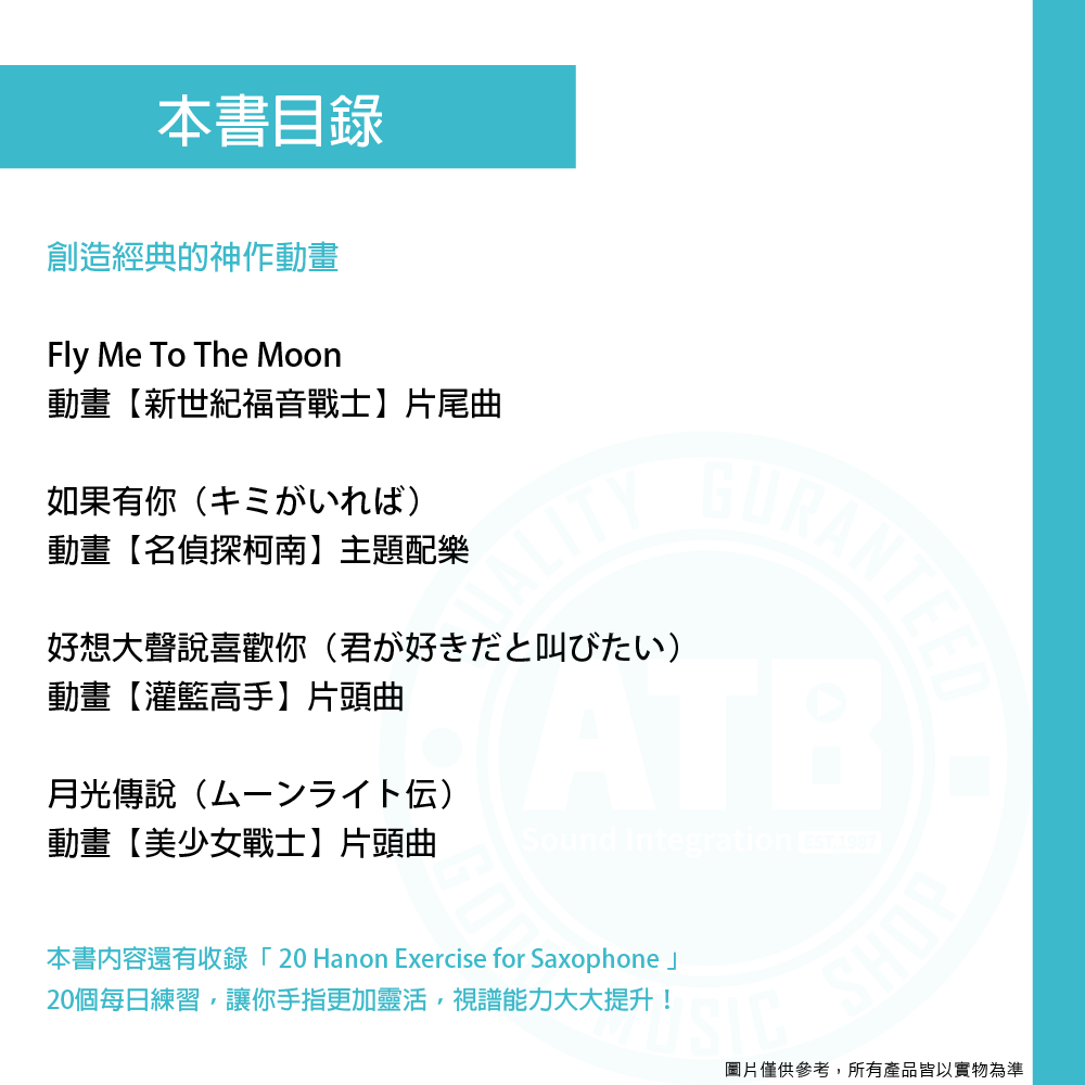 ◆固定調、首調雙樂譜,樂曲適度改編符合薩克斯風吹奏調性