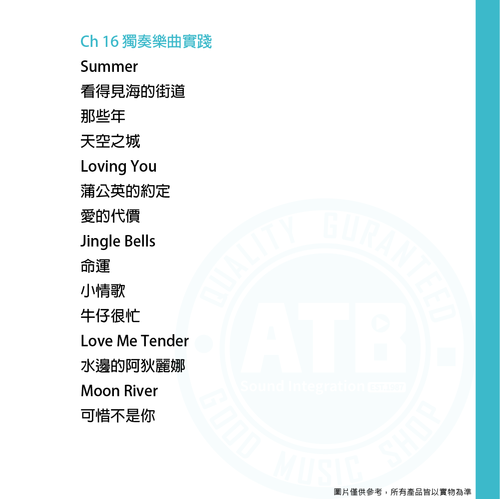 ◆15首經典歌曲指彈獨奏曲目:Moon River、天空之城、小情歌?等曲目