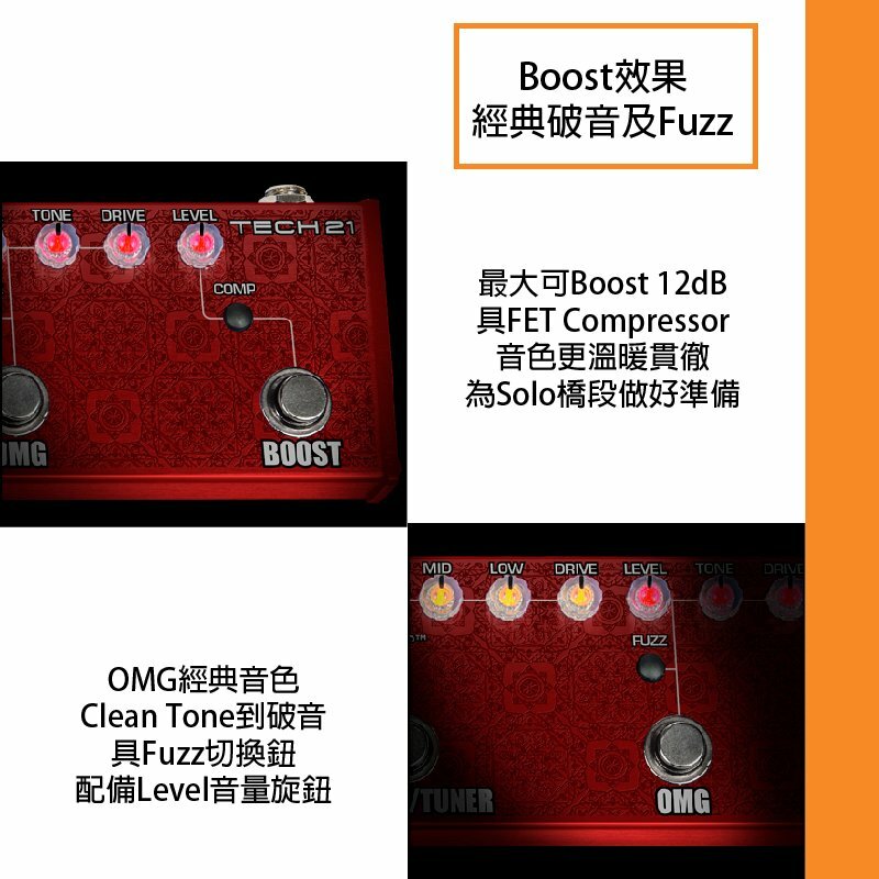 ◆搭載Boost, Compressor, Overdrive, Fuzz, Sansamp, Reverb, Delay, Rotary效果
