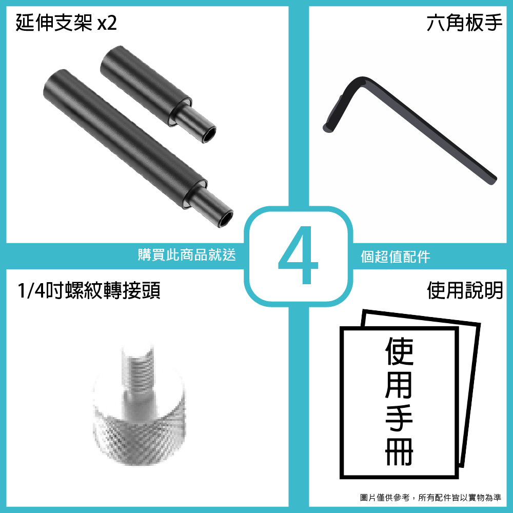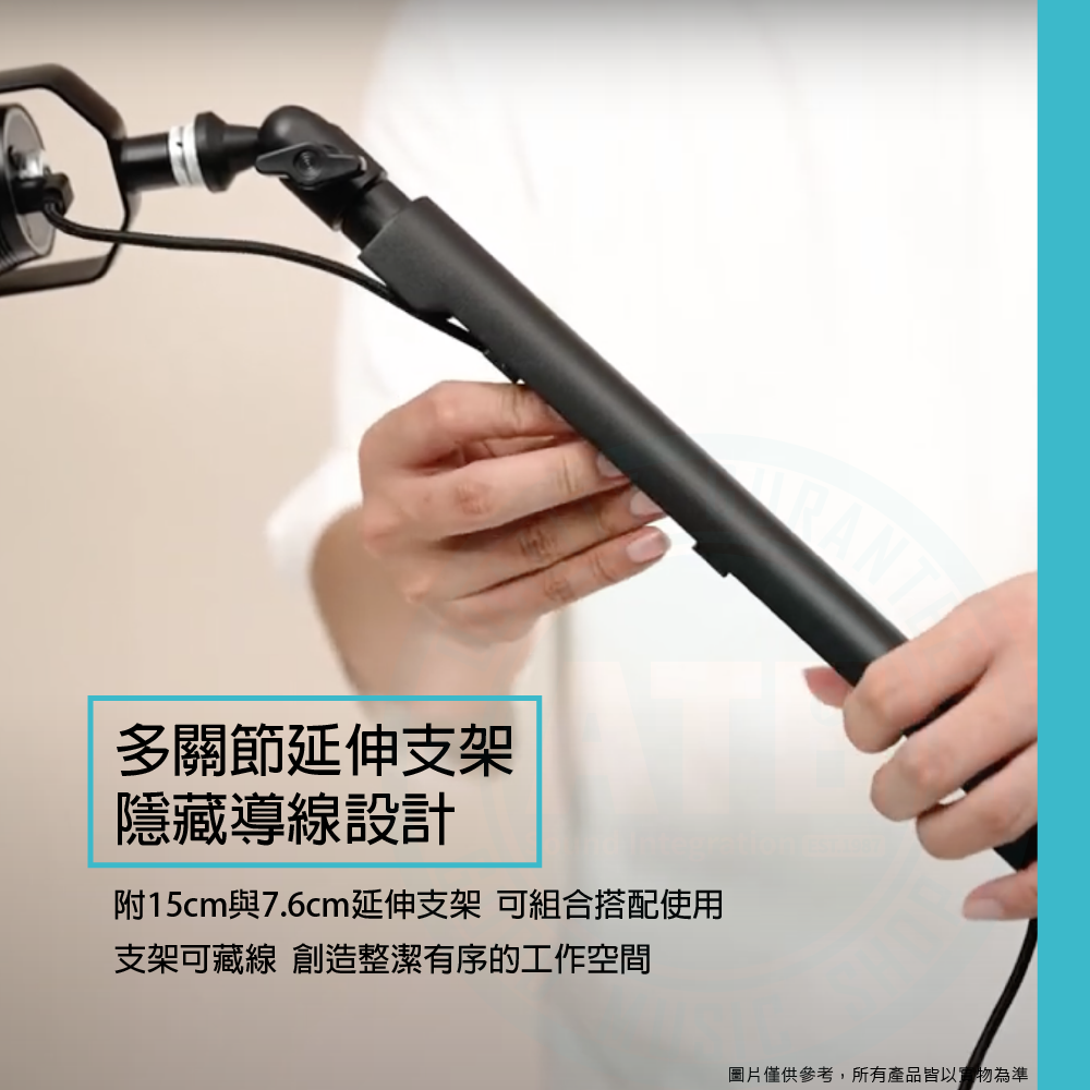 ◆ 支架可藏線,附15cm與7.6cm延伸支架