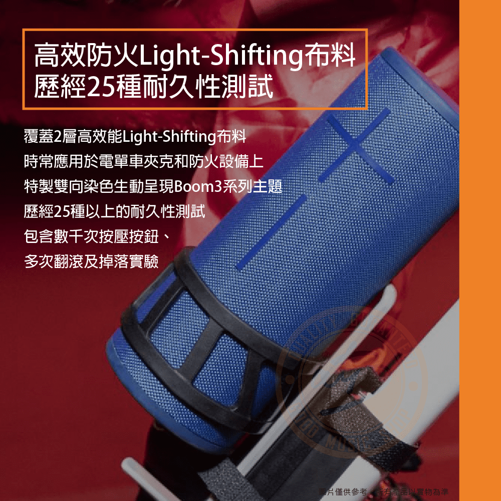 ◆ 覆蓋2層應用於防火設備上之高效能Light-Shifting布料,歷經多次耐久性測試