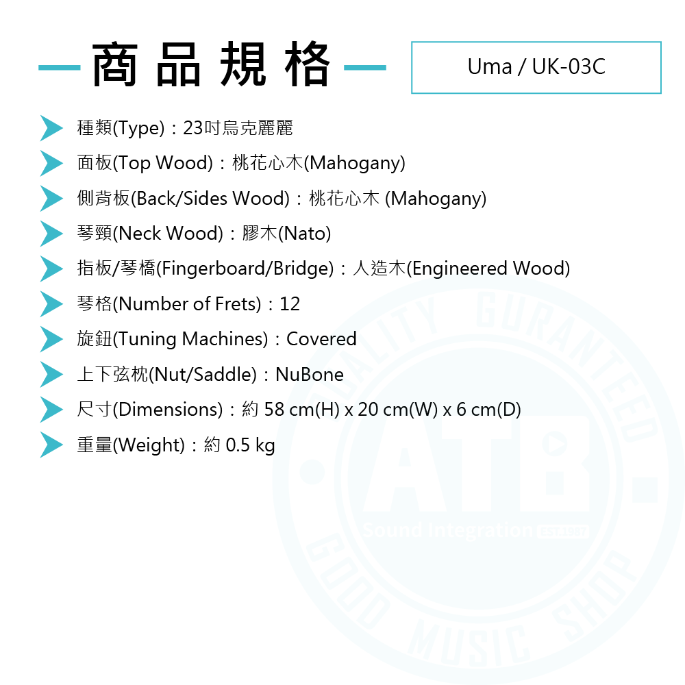 ◆ 台灣品牌Uma,23吋烏克麗麗