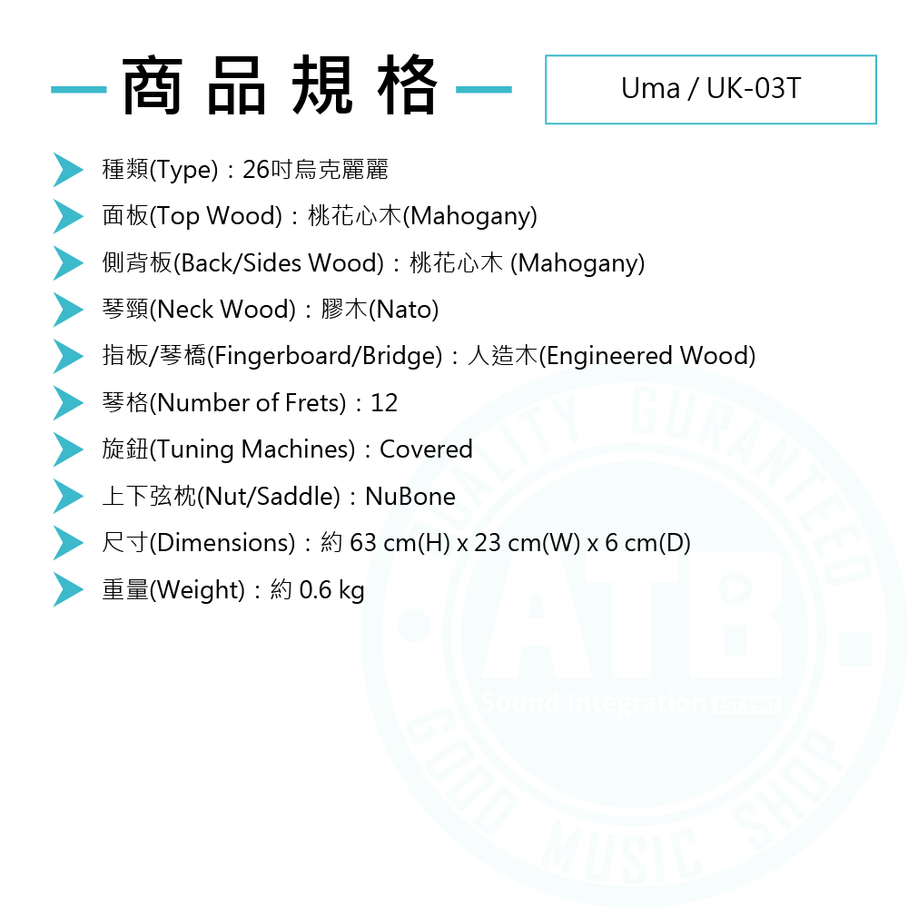 ◆ 台灣品牌Uma,26吋烏克麗麗