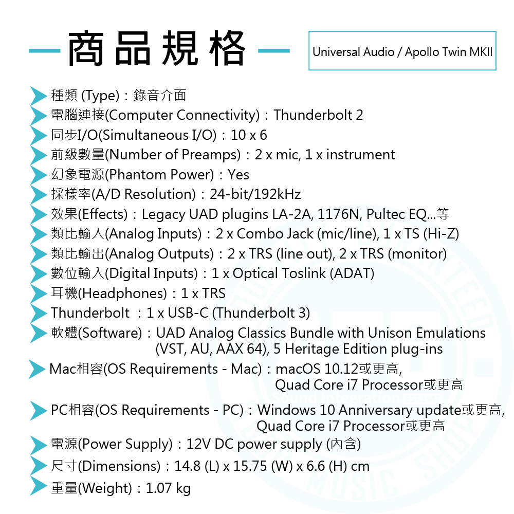 ◆ 附經典UAD Plugins:UA 610、UA 1176、Teletronix LA-2A...等