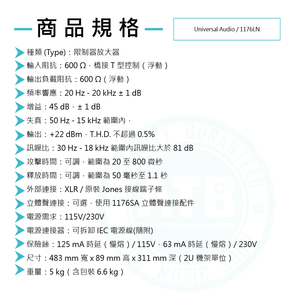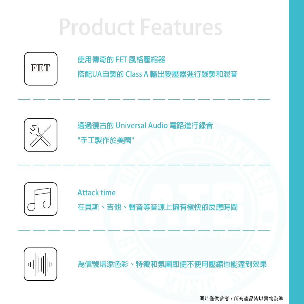 ◆ 經典 FET 壓縮器設計,重現原版音色和動態控制