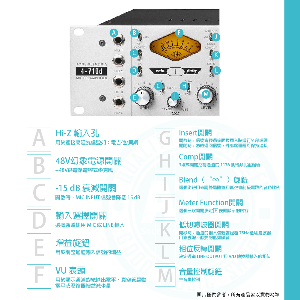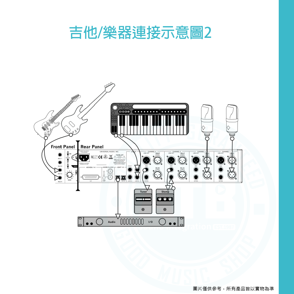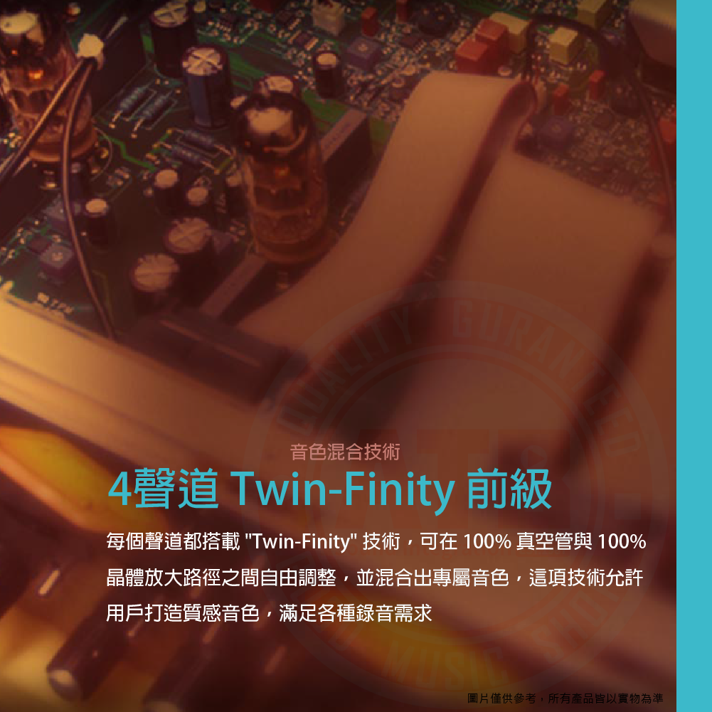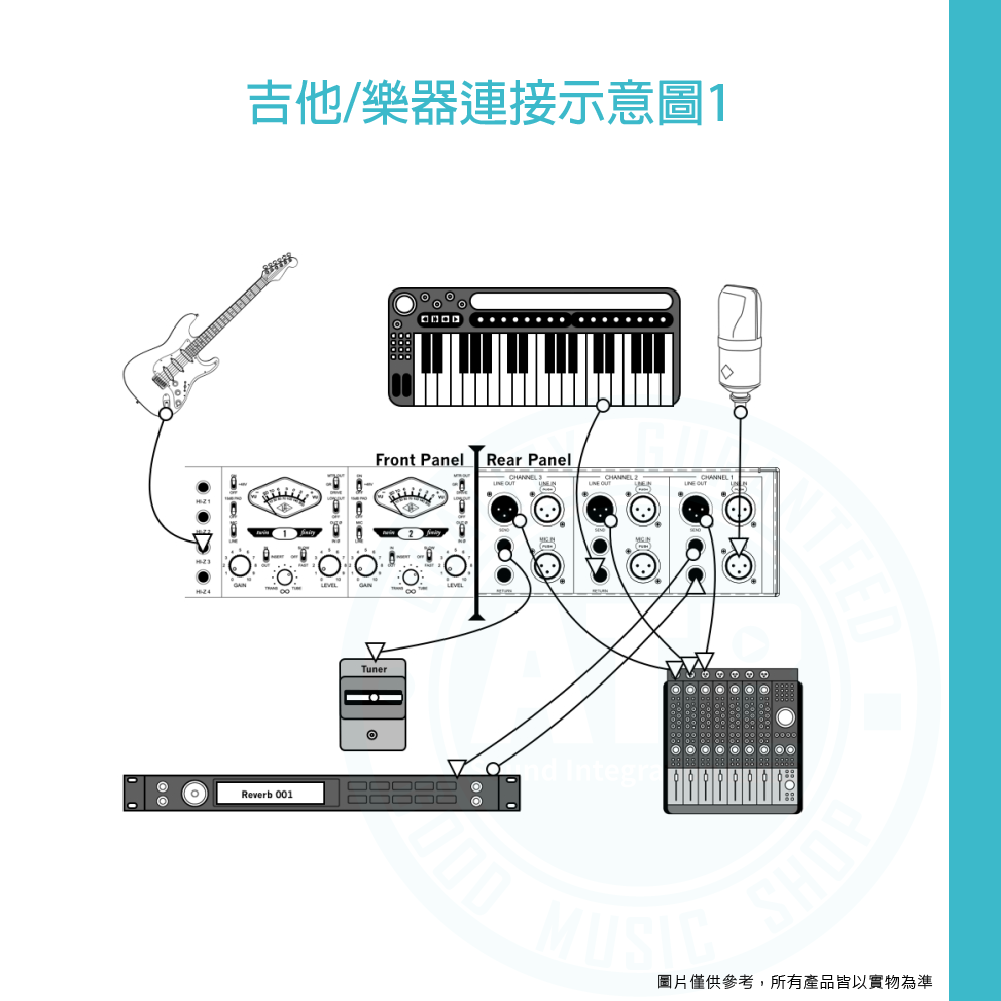 ◆ 4通道混合前級設計,提供麥克風、線路與高阻抗輸入