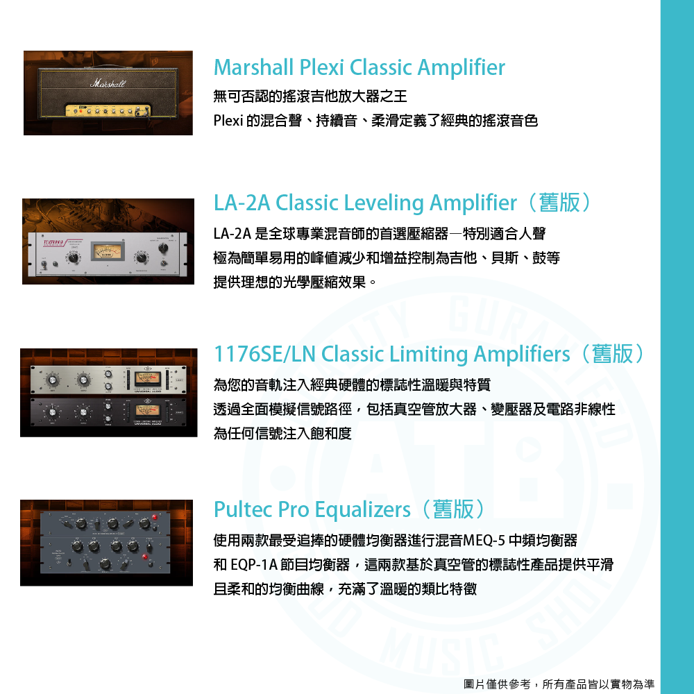 ◆ Heritage附經典UAD Plugin:UA 610-B、1176SE/LN、Teletronix LA-2A等