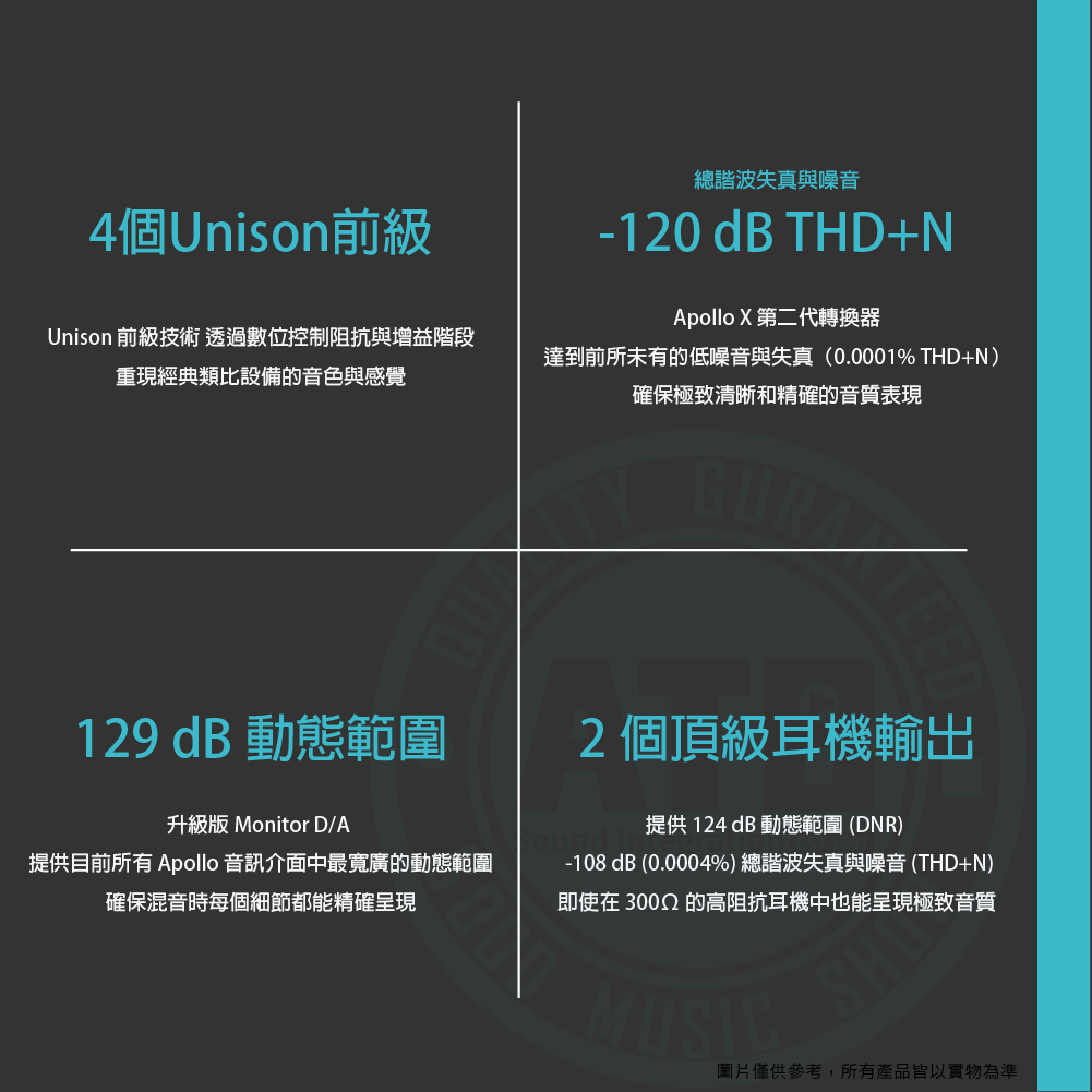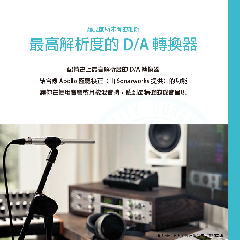 ◆Apollo X 第二代轉換器支援 24-bit / 192 kHz,提供 129 dB 的動態範圍