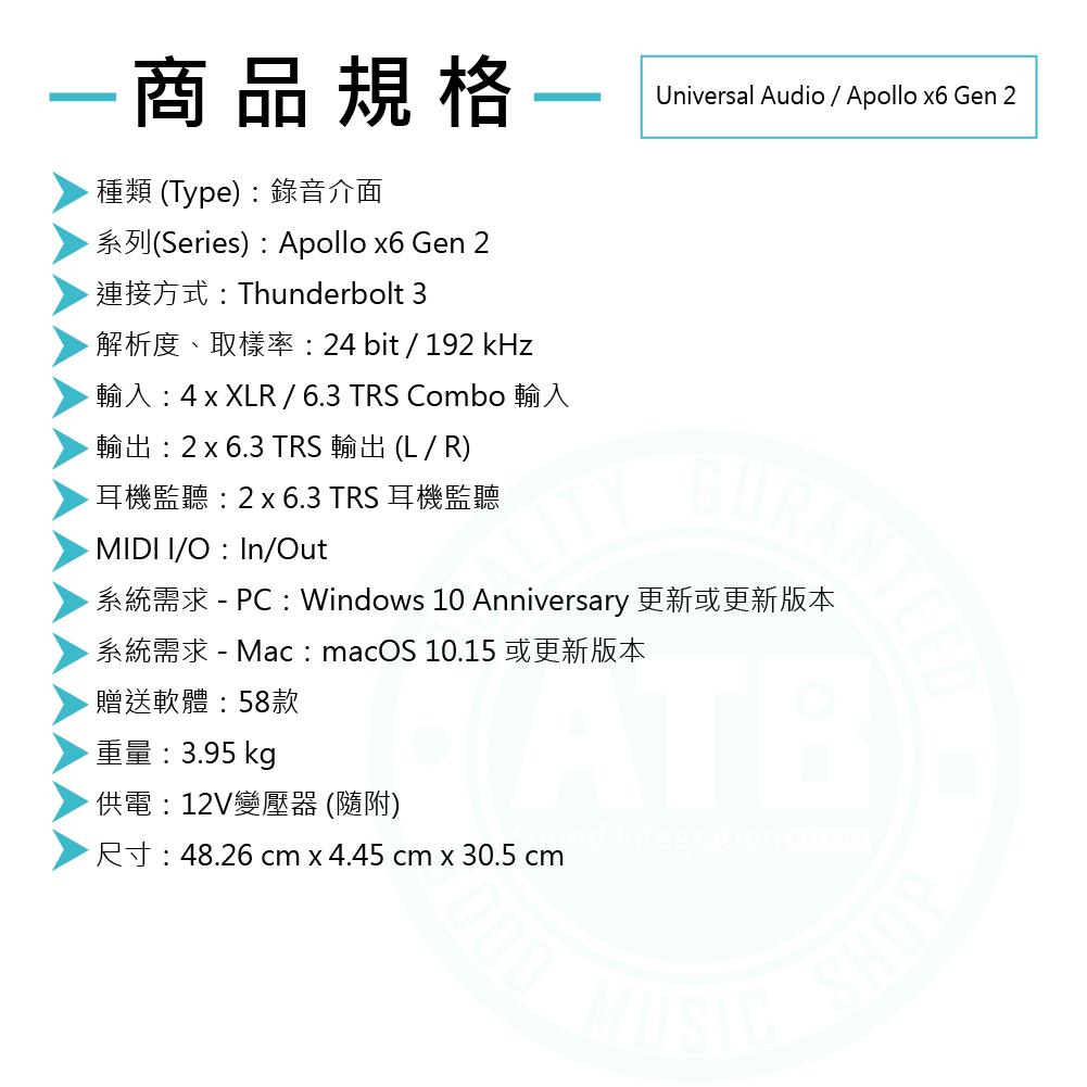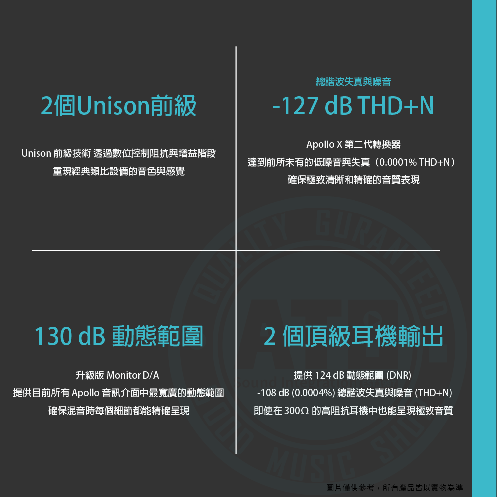 ◆高階 Apollo X 第二代轉換器支援 24-bit / 192 kHz,適合專業音樂製作