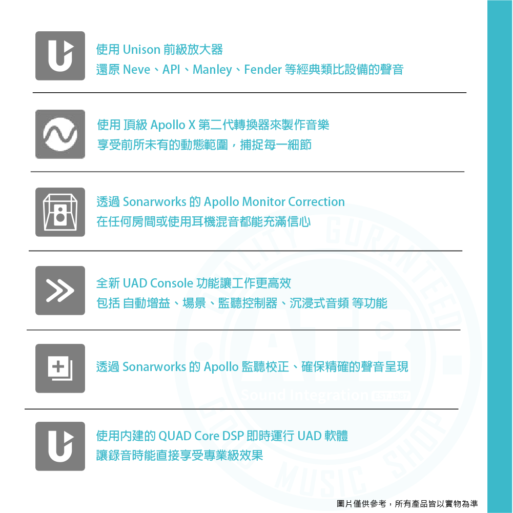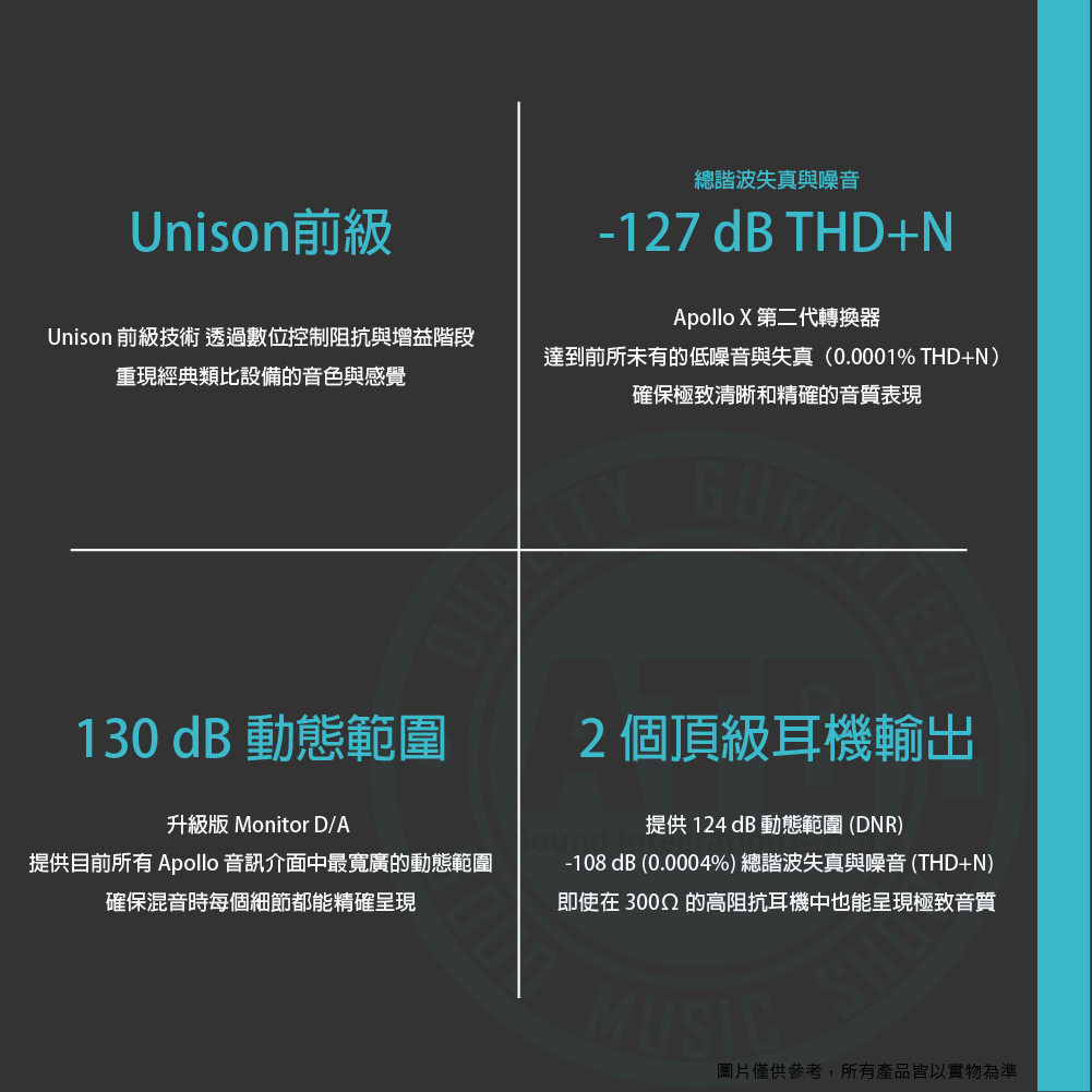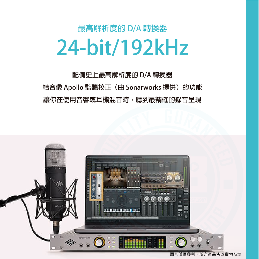 ◆高階 Apollo X 第二代轉換器支援 24-bit / 192 kHz,適合專業音樂製作