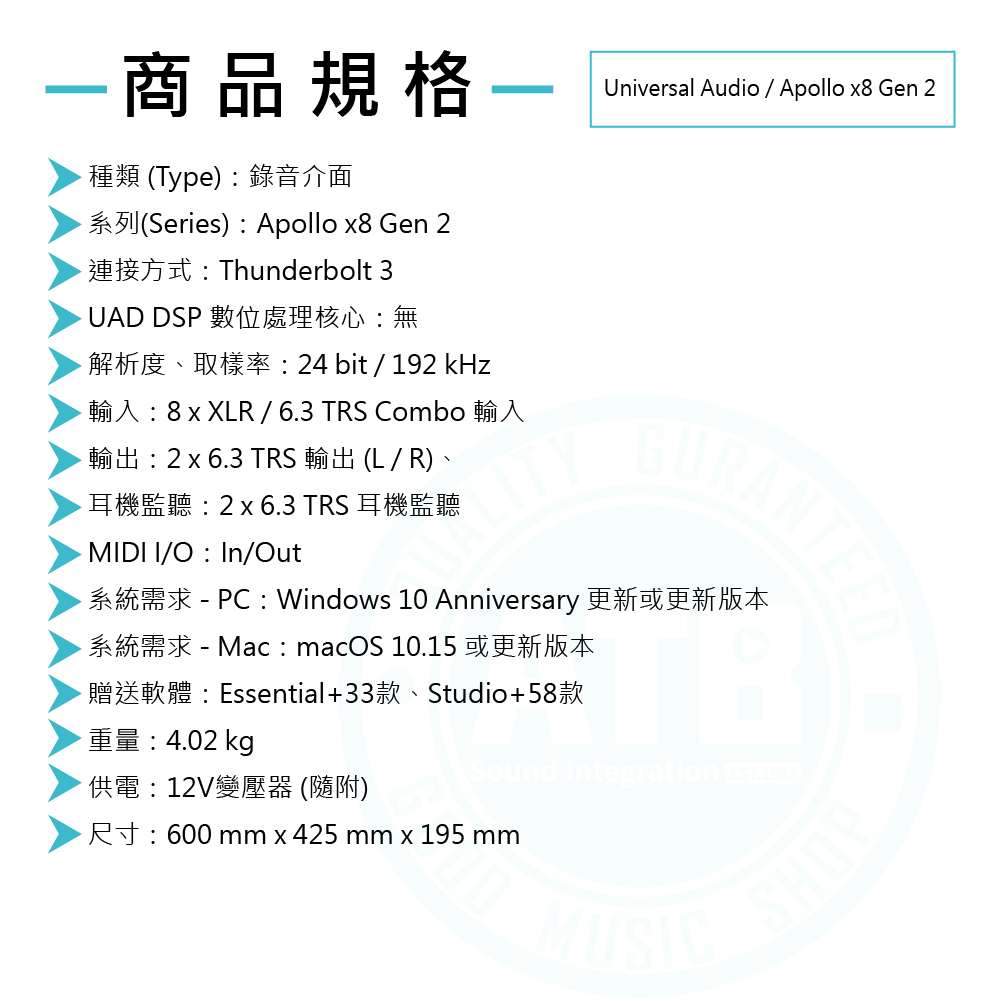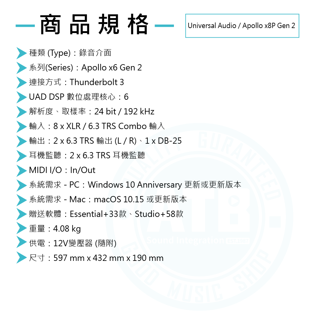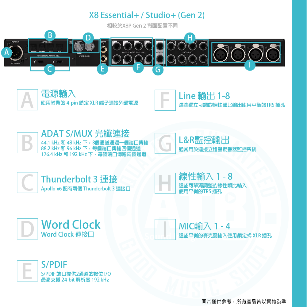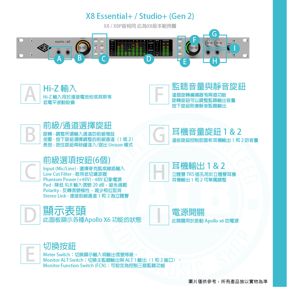 ◆高階 Apollo X 第二代轉換器支援 24-bit / 192 kHz,適合專業音樂製作