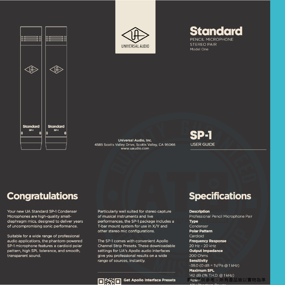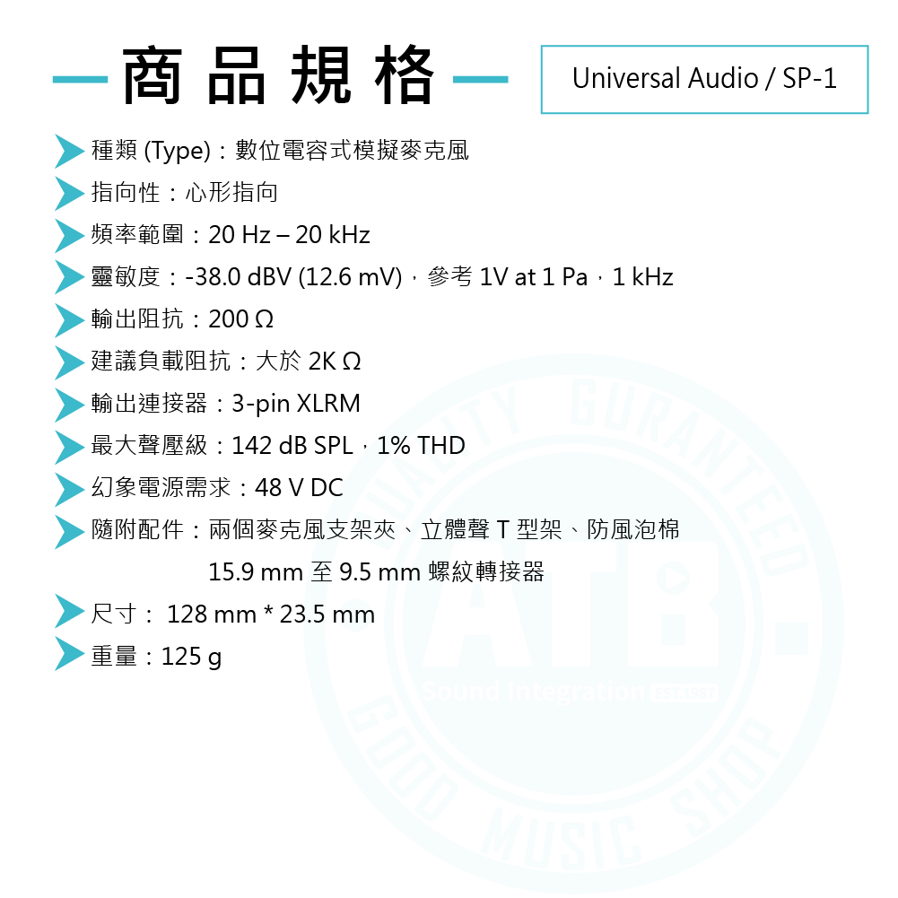 ◆高聲壓級達到142 dB SPL,適合錄製高音量樂器