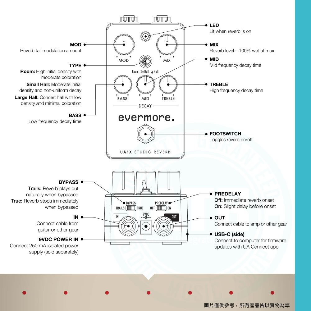 ◆ 三種數位混響音色:Room、Small Hall、Large Hall